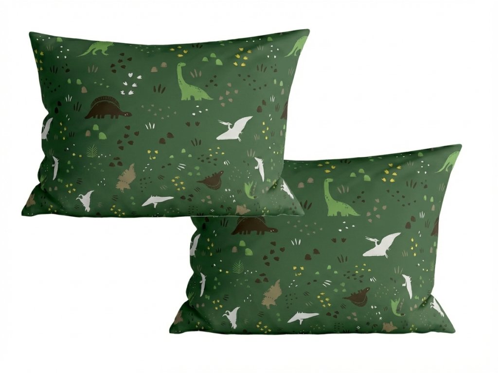 Sada 2 ks dekoračních povlaků na polštář DINO STEPS 40x60 cm, tmavě zelená