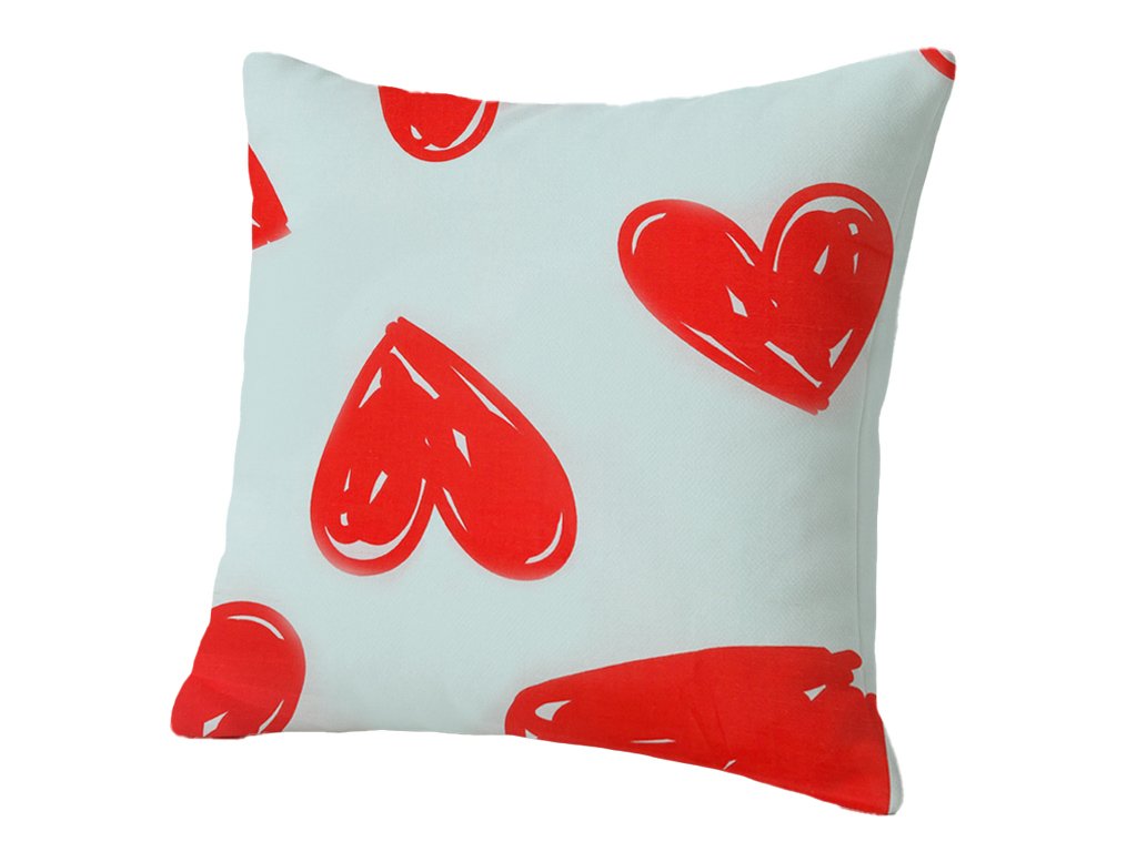 Světle modrý podklad v kombinaci s červenými srdci skvěle ladí s bílými, šedými nebo pastelovými tóny. Perfektní volba pro ty, kteří chtějí domovu dodat nádech lásky a radosti.