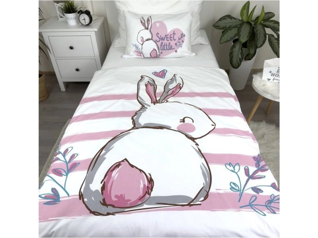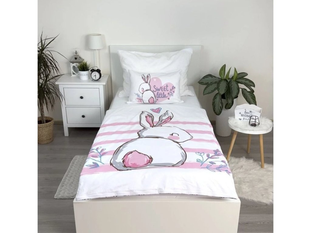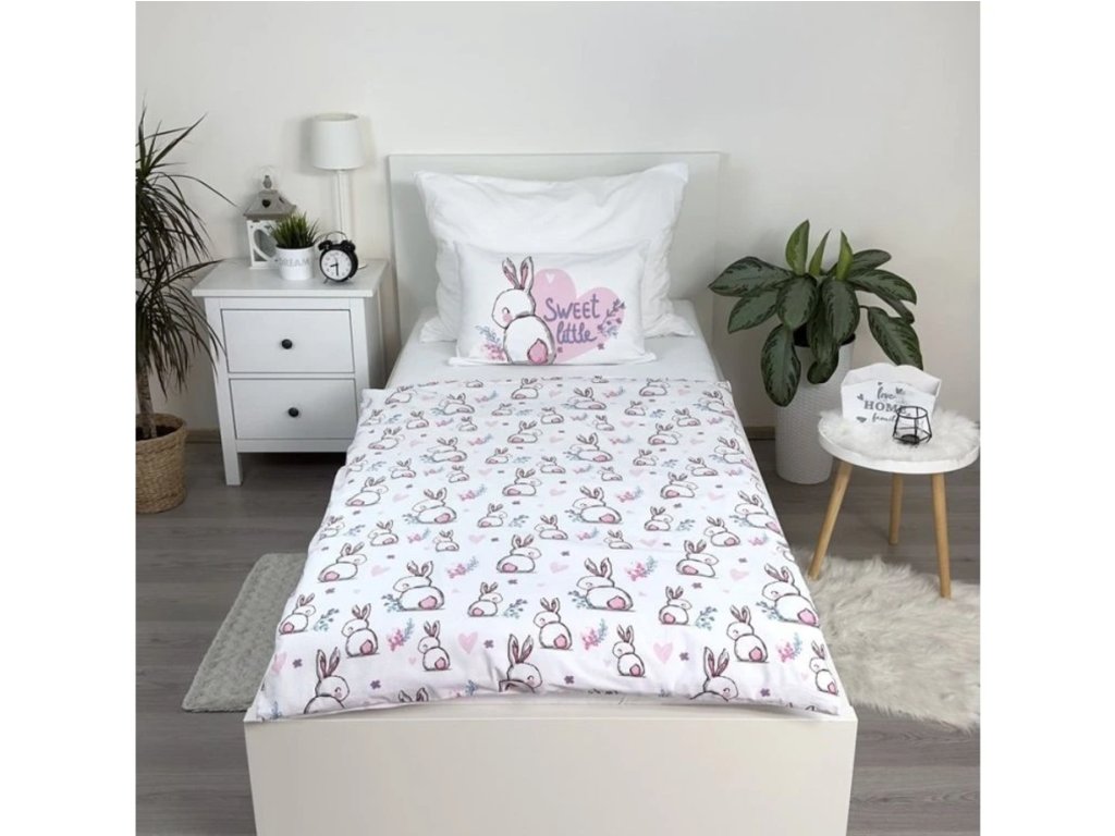 Bavlněné povlečení do postýlky BUNNY SWEET bílé