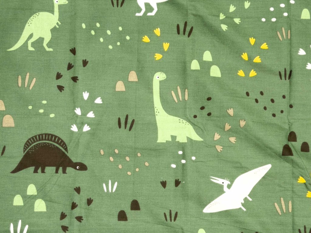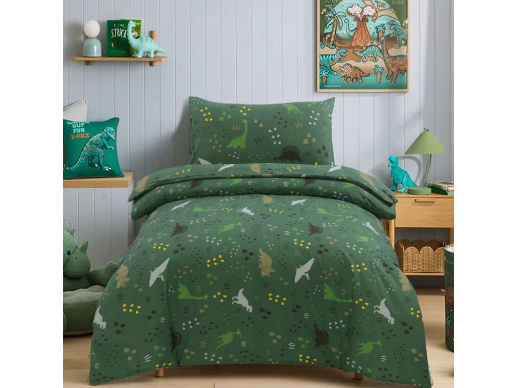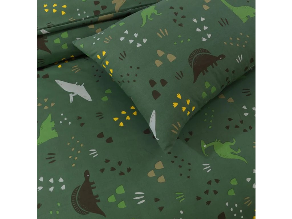 Bavlněné povlečení do postýlky DINO STEPS tmavě zelené