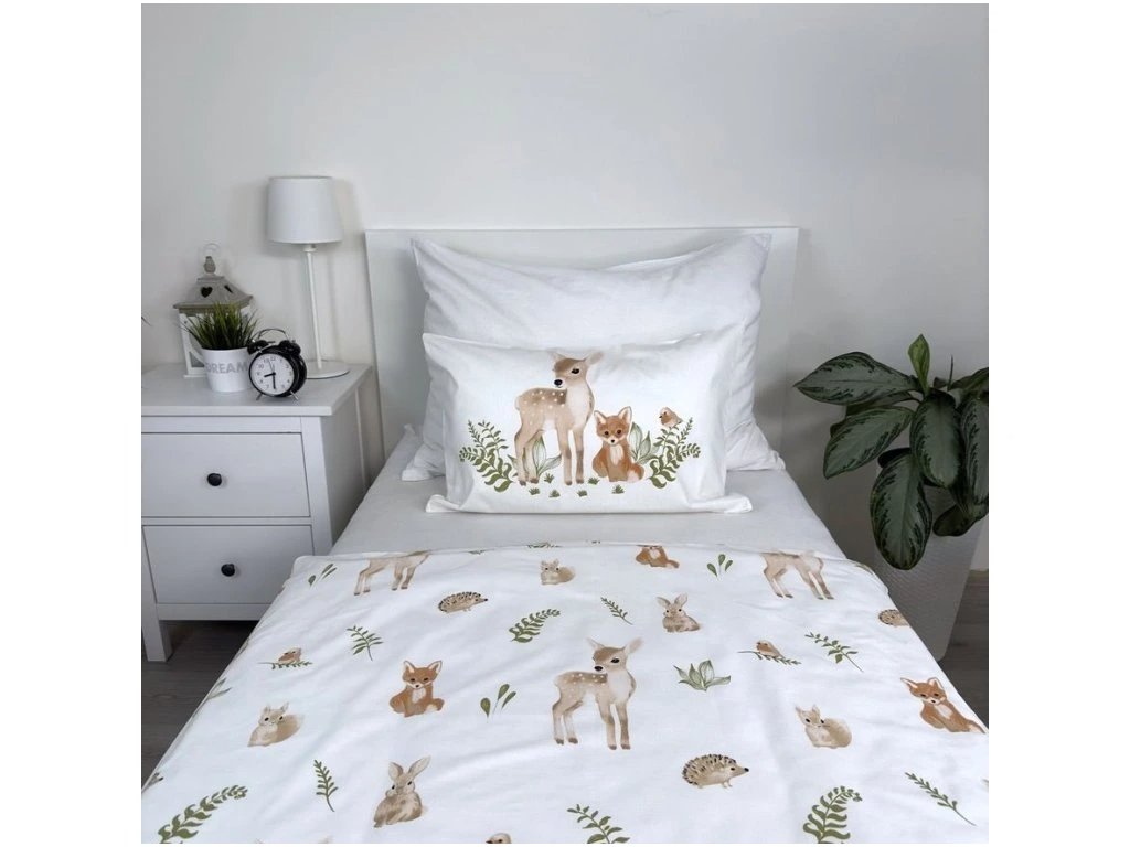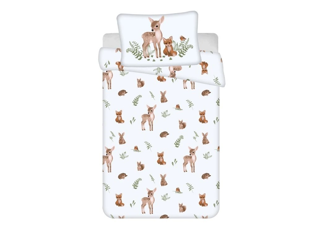 Bavlněné povlečení do postýlky FOREST ANIMALS bílé