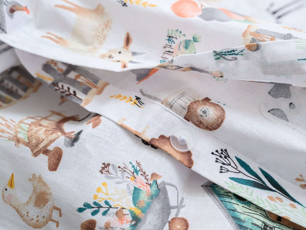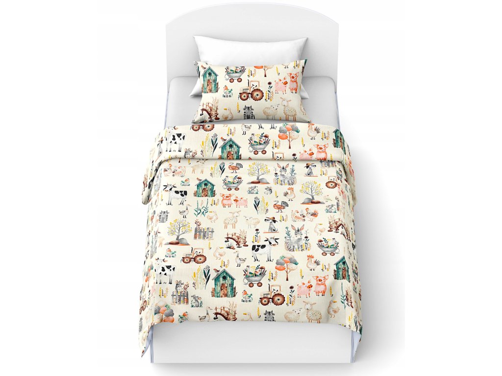 Bavlněné povlečení do postýlky HAPPY FARM krémové