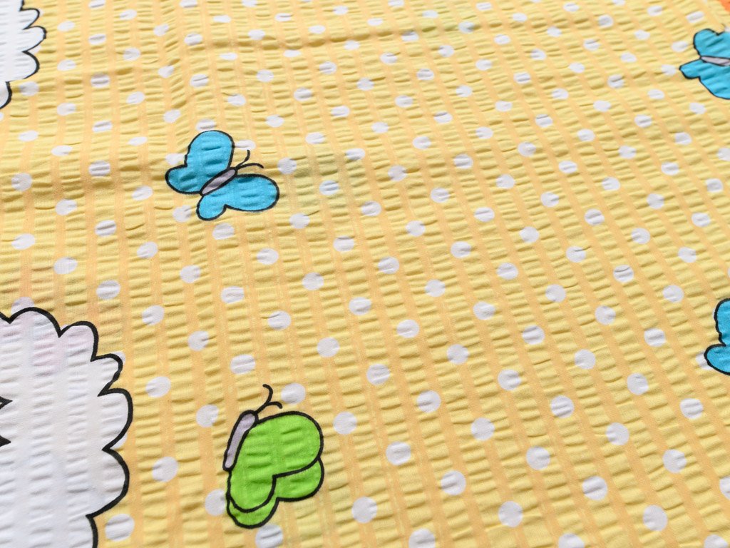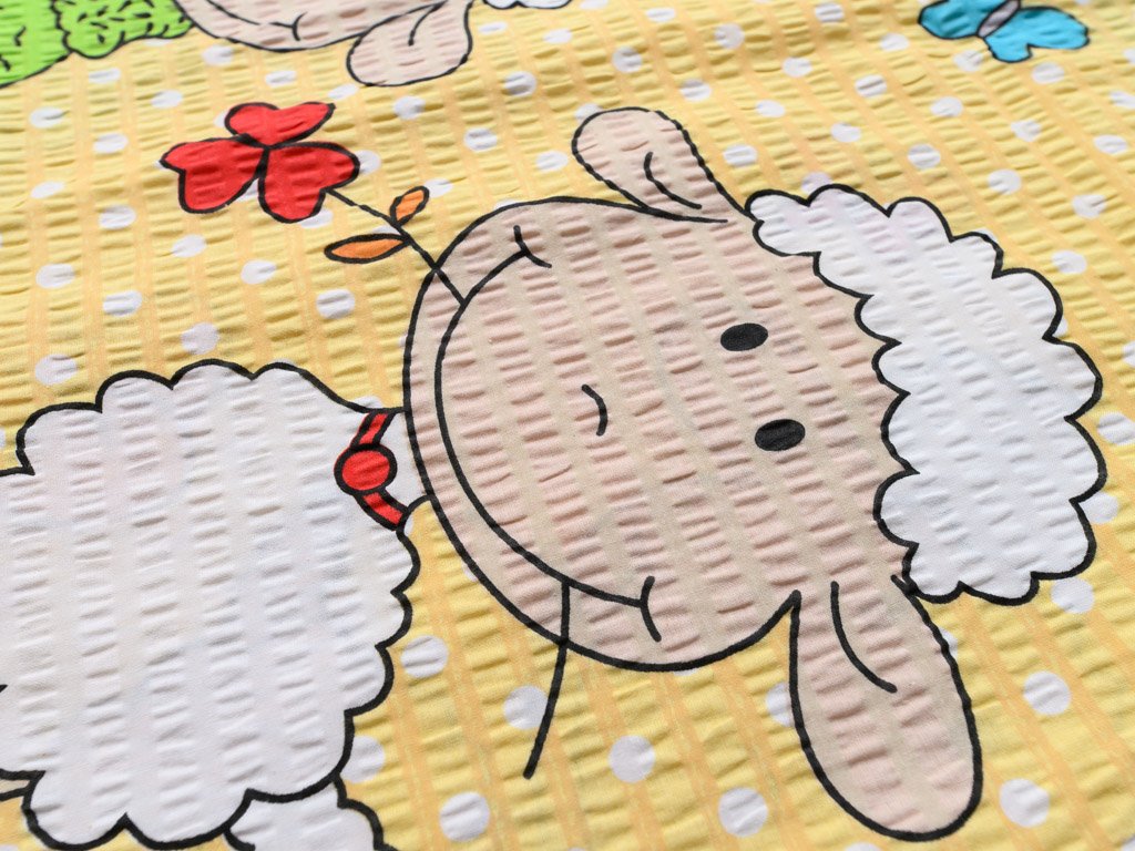 Praktický materiál, který vyniká stejnými vlastnostmi jako bavlna bez nutnosti žehlení. Krep je ideální materiál pro děti i dospělé v každém ročním období. V zimě zahřeje a v létě příjemně chladí, je vhodný i pro alergiky. Snadná údržba, savost, prodyšnost a měkkost je zachována i na typicky zvrásněném povrchu. Vlnitého povrchu je docíleno šetrnou úpravou bavlny, při plném zachování jejích vlastností.
