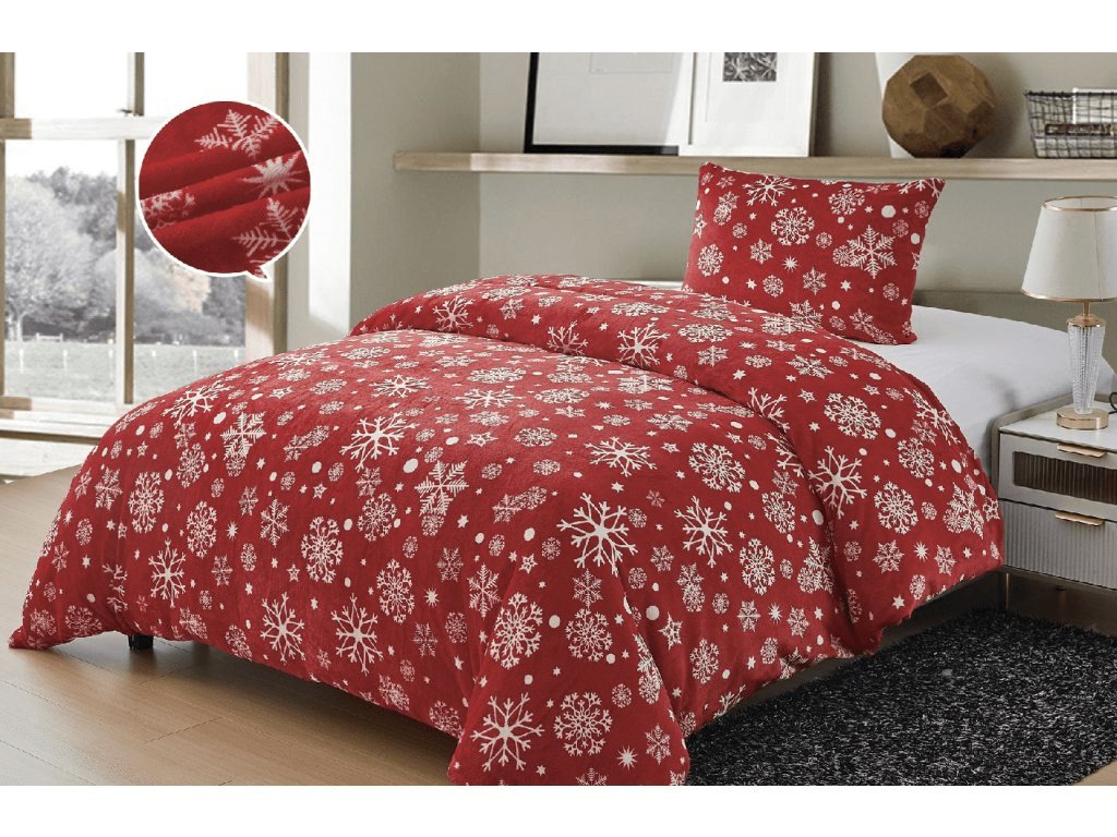 Mikroplyšové povlečení SNOWFALL VELVET červené