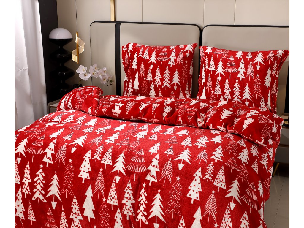 Povlečení mikroplyš CHRISTMAS TREES červené