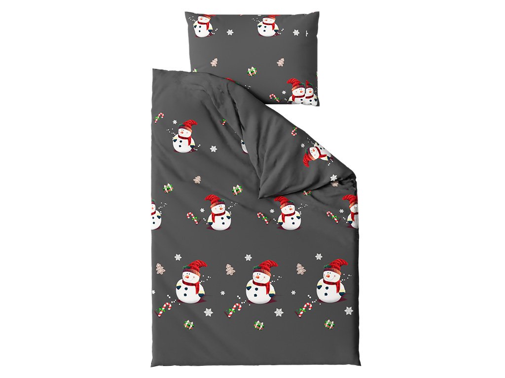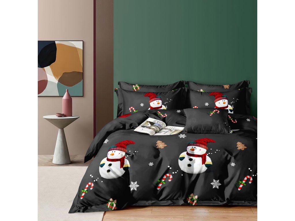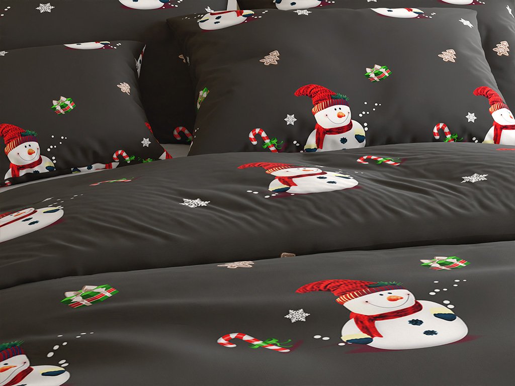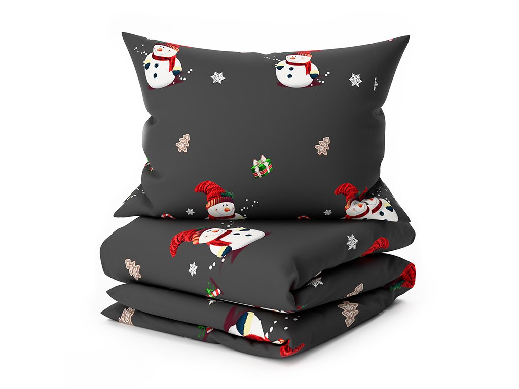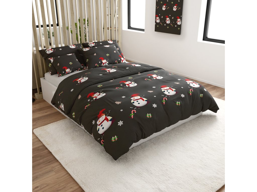 Povlečení z mikrovlákna BÍLÝ SNĚHULÁK černé