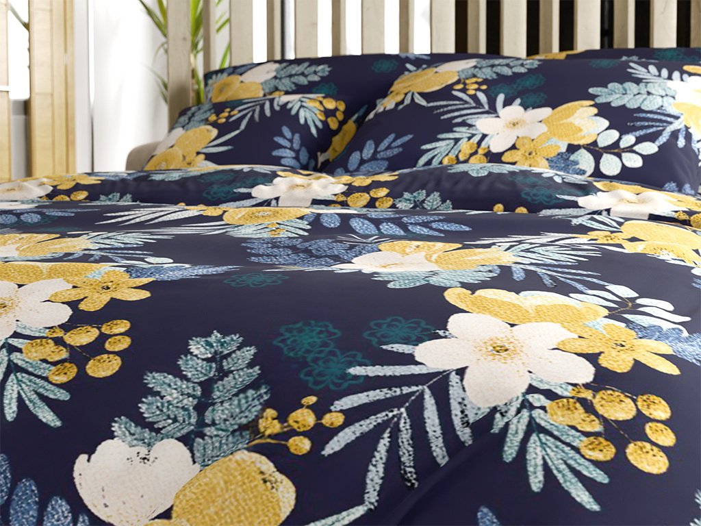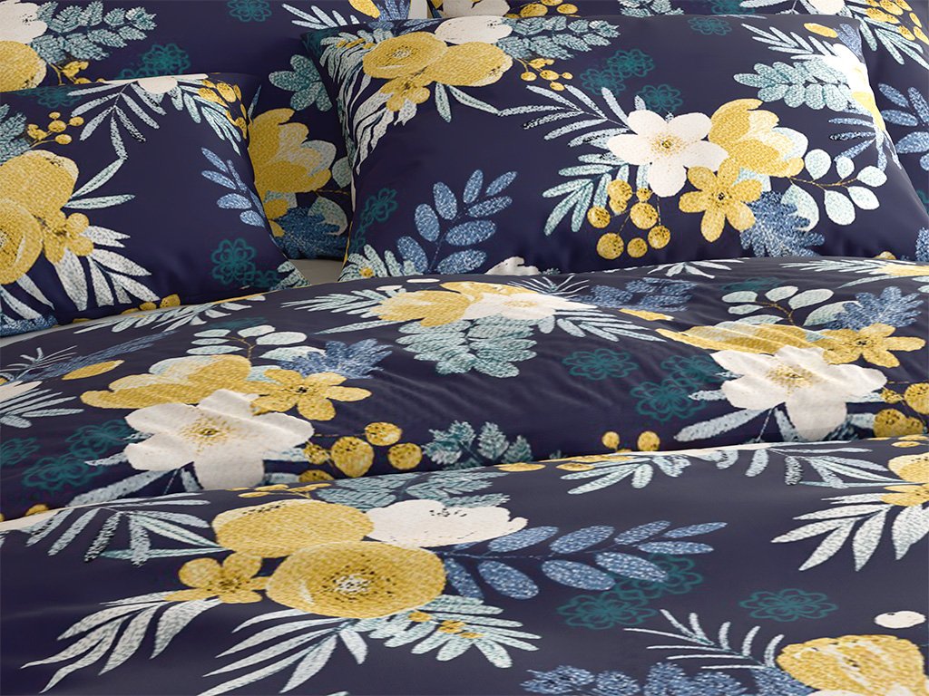 Povlečení z mikrovlákna FLOWERISH tmavě modré
