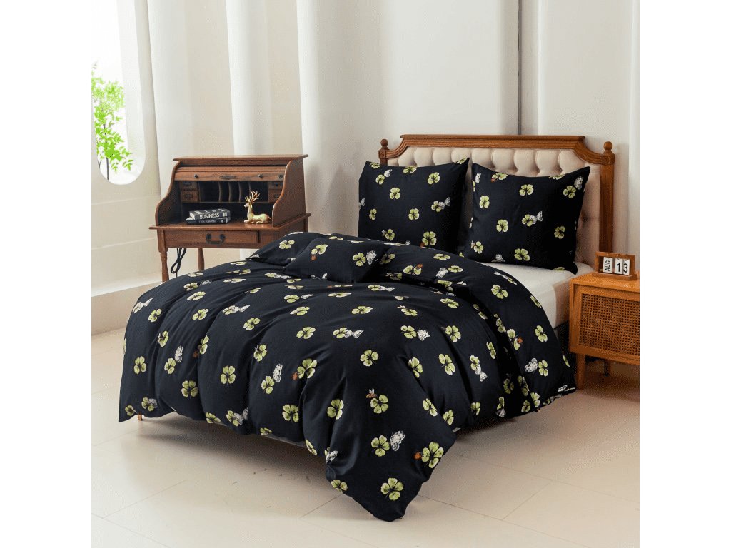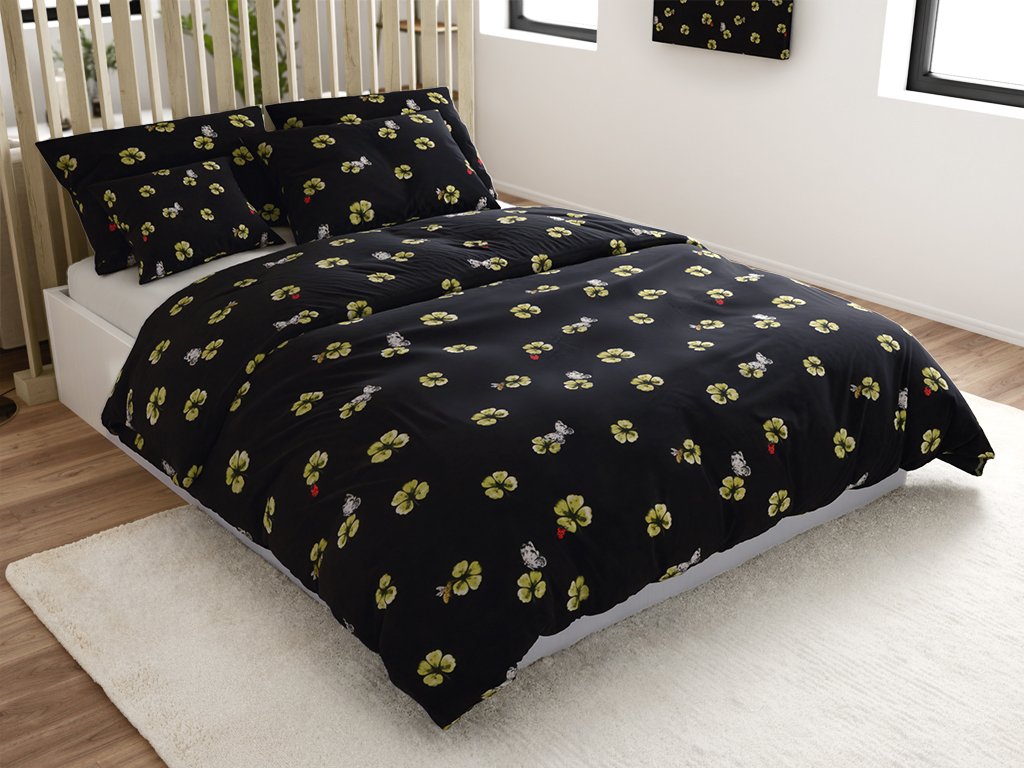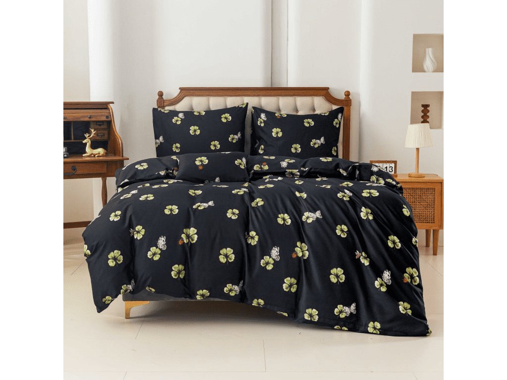 Povlečení z mikrovlákna FOUR LEAF CLOVER černé