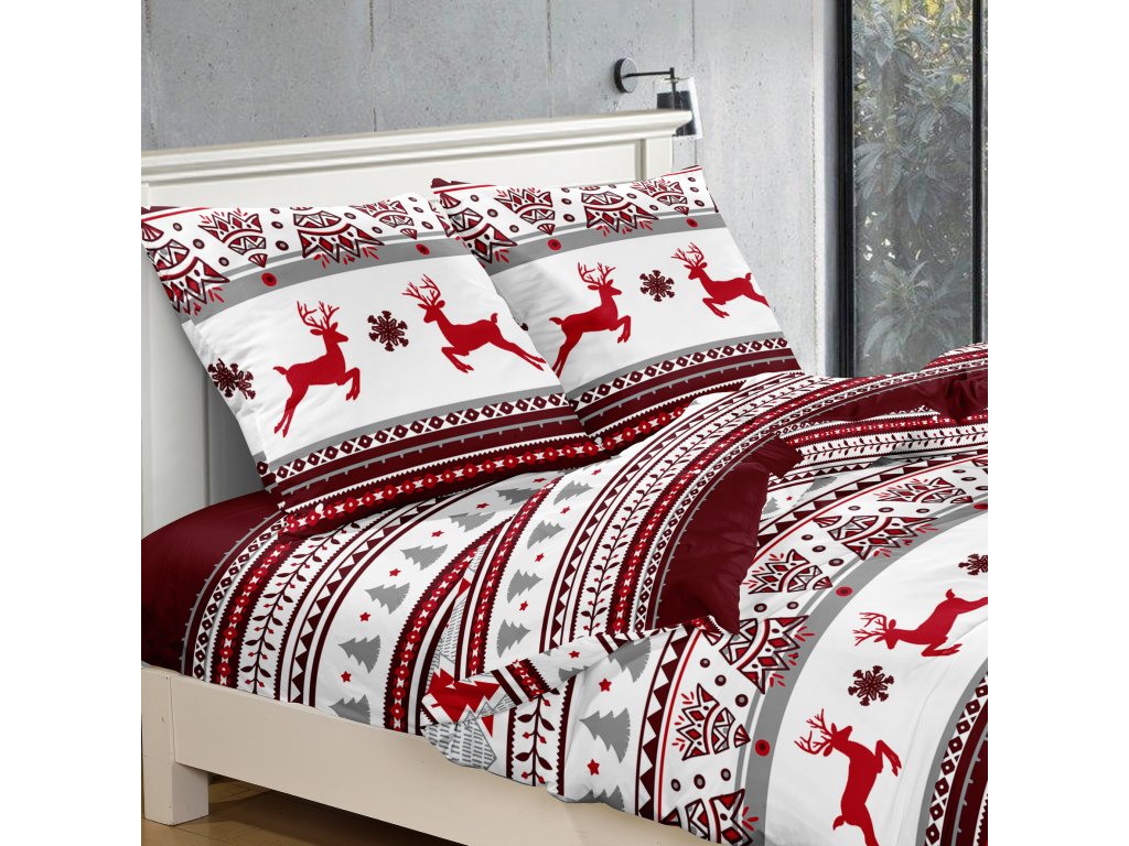 Povlečení z mikrovlákna JELEN A VLOČKA červené