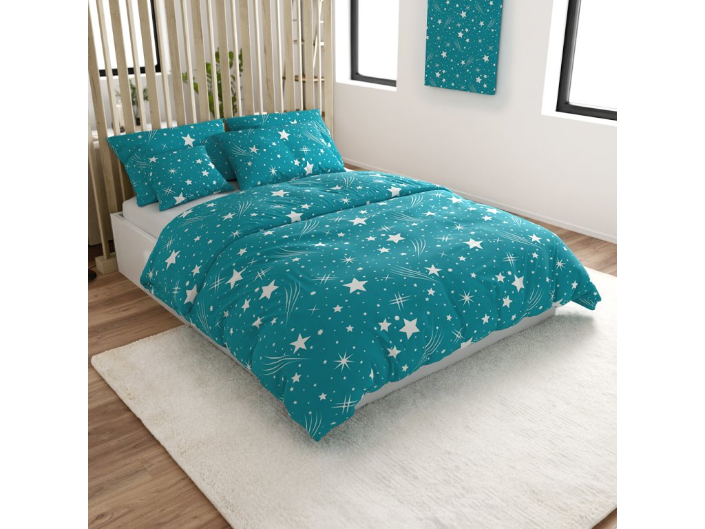 Povlečení z mikrovlákna NOČNÍ OBLOHA tyrkysové