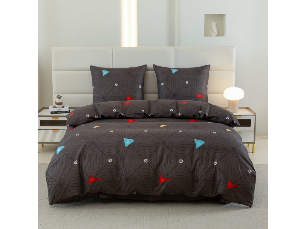 Povlečení z mikrovlákna je ideální volbou pro každodenní používání díky jemnému povrchu, tvarové stálosti a minimálním nárokům na údržbu. Materiál se nemačká, rychle schne a dlouhodobě si zachovává svůj vzhled. Výrazný geometrický motiv v tmavě šedém provedení dodá ložnici moderní charakter a snadno se kombinuje s dalšími doplňky.