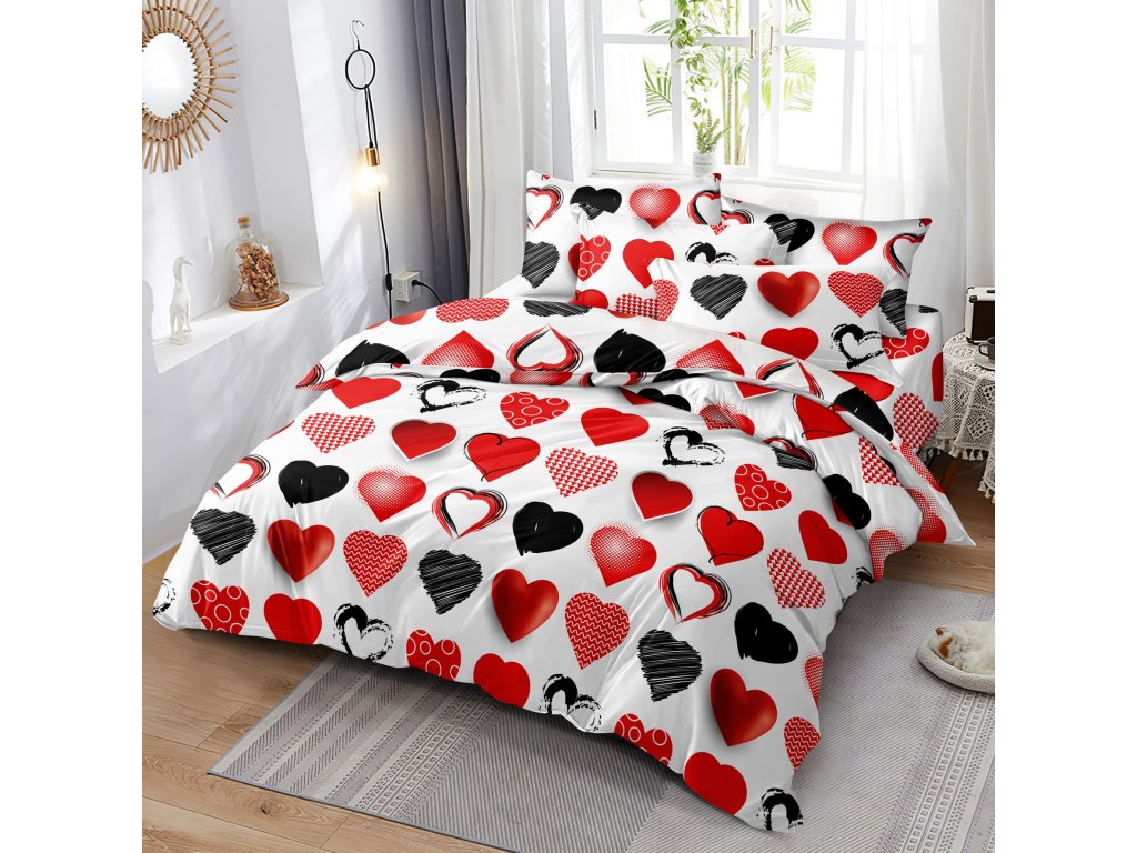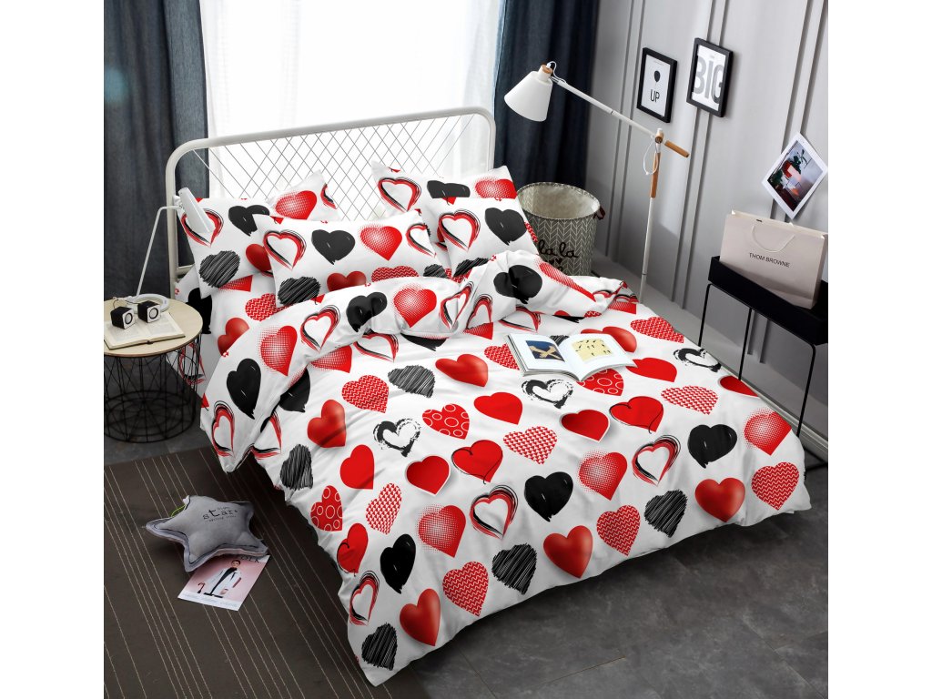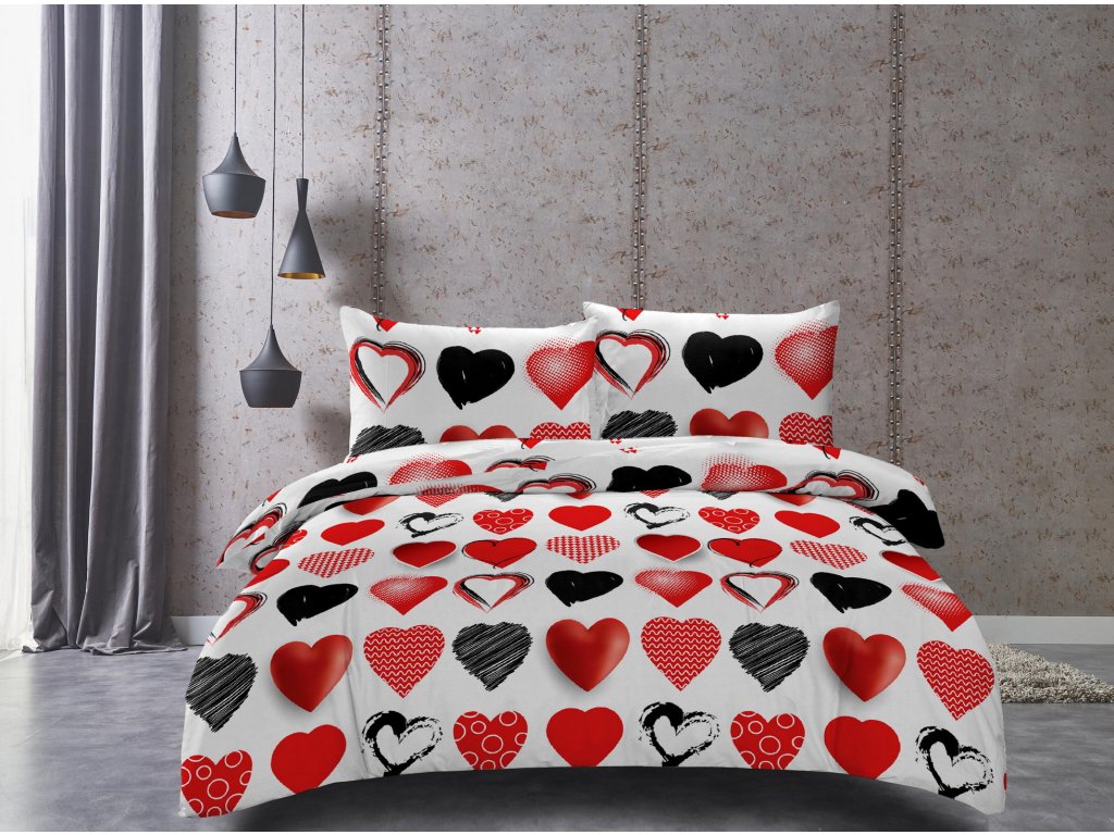 Povlečení z mikrovlákna RED AND BLACK HEARTS bílé