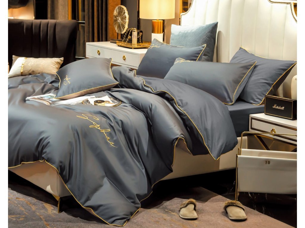 Povlečení z mikrovlákna s výšivkou SOPHAE šedé