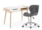 Set do pracovny stůl TAYLOR SONOMA 100x50 cm + křeslo AVOLA z eko kůže šedo-bílé