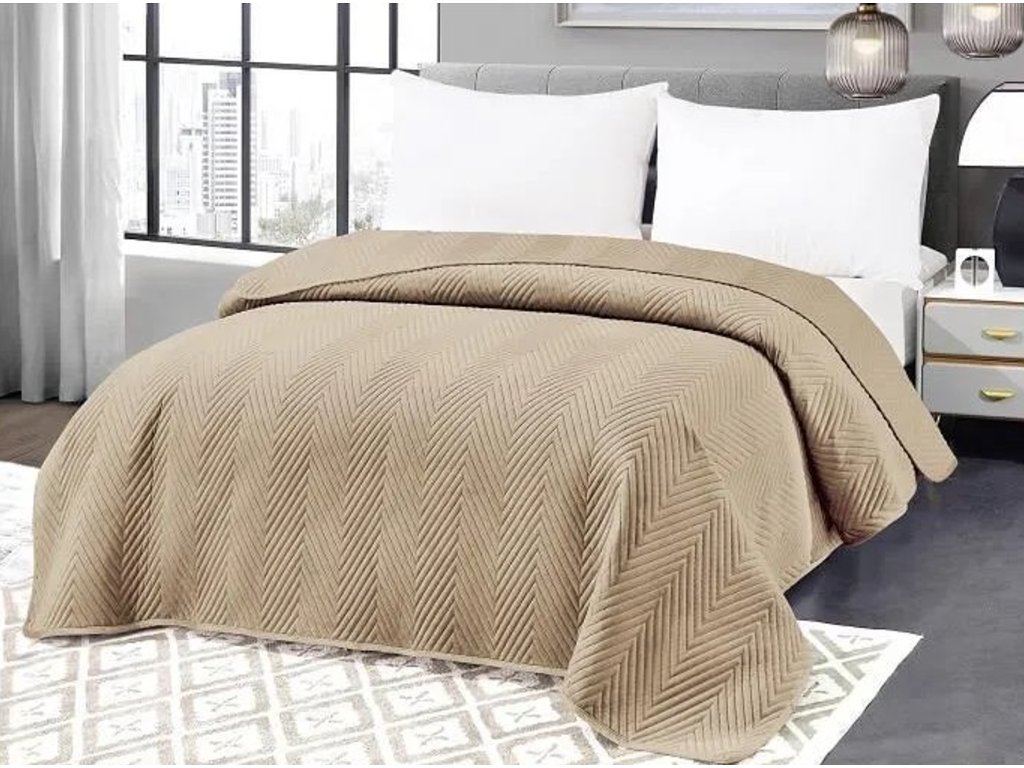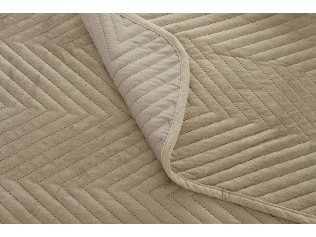 Béžový sametový přehoz na postel ARROW VELVET