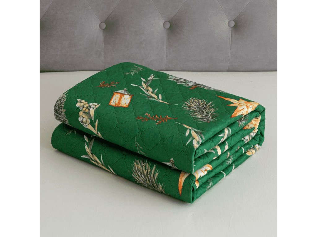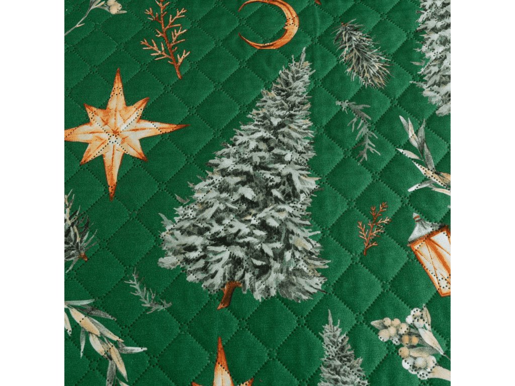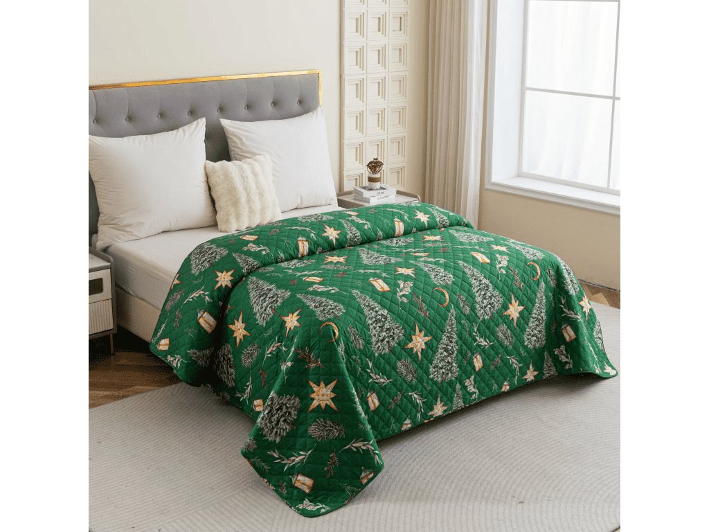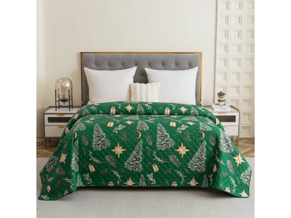 Přehoz na postel se vzorem GREEN CHRISTMAS, zelený