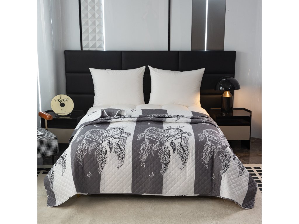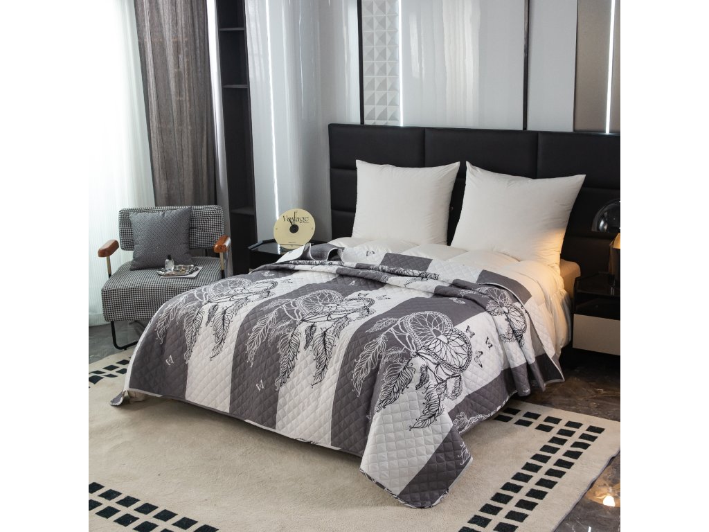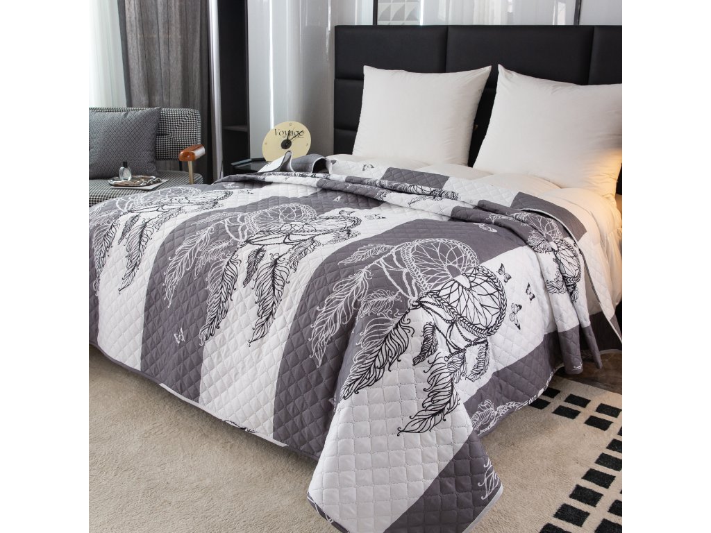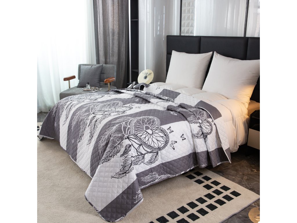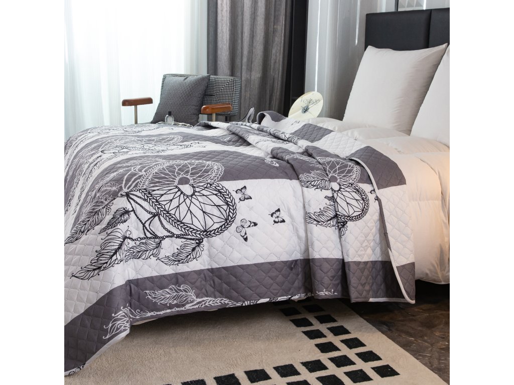 Přehoz na postel se vzorem TIRSO šedo-bílý