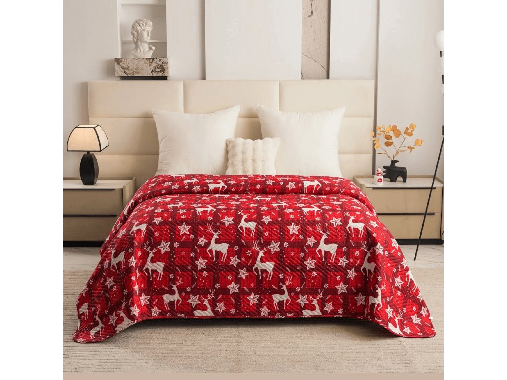 Přehoz na postel VELVET CHRISTMAS WAVE, červený