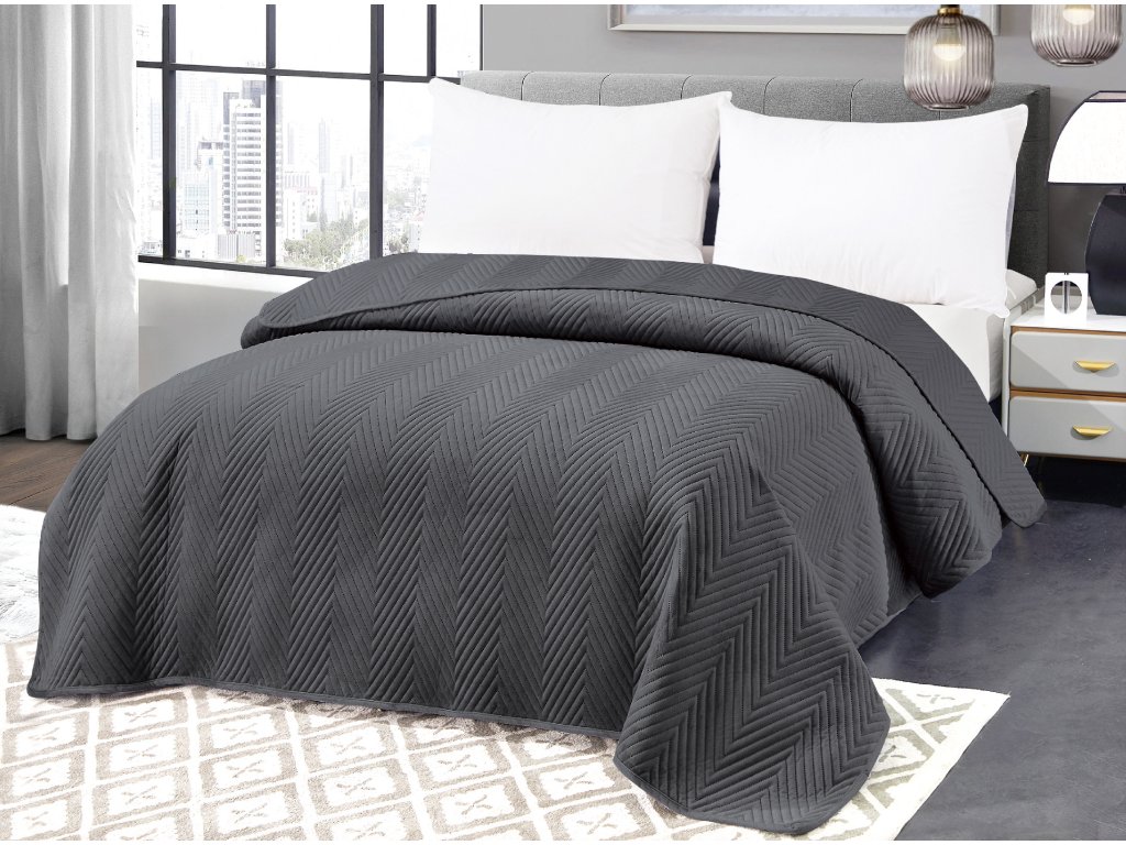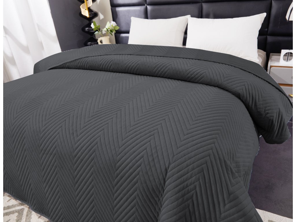 Tmavě šedý sametový přehoz na postel ARROW VELVET