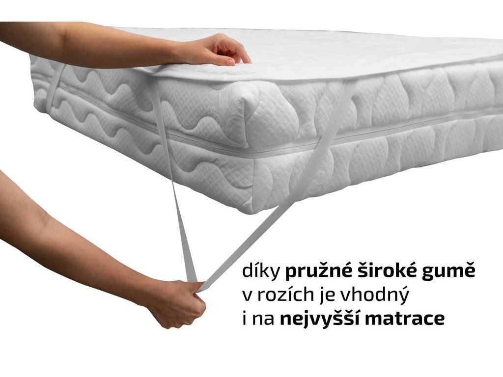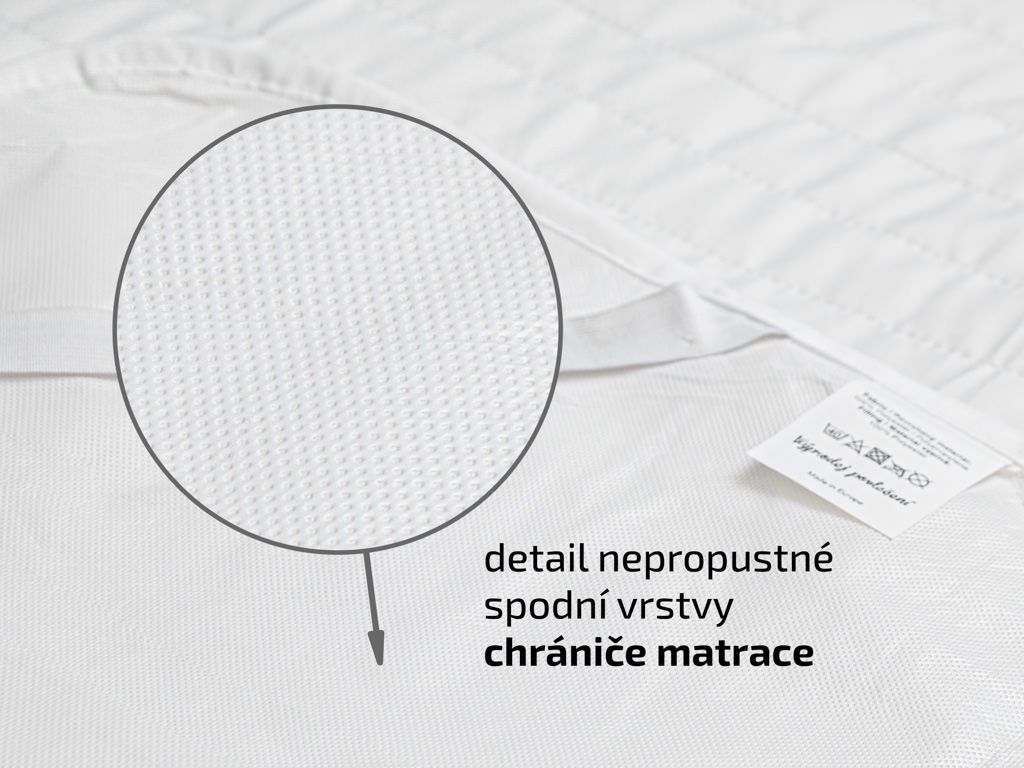 Ochrana matrace je důležitější, než si myslíte. Každý člověk, ať dítě nebo dospělý se přirozeně potí. Během noci vypotíme až litr potu, který se vsákne do prostěradla a jádra matrace. Chránič matrace celkově zvýší hygienu lůžka. Navíc chrání před mechanickým poškozením, znečištěním, roztoči, potem i močí. Jedná se o skvělého pomocníka na dětské postýlky nebo první postele. Své místo má také u dospělých jako běžná ochrana matrace, u seniorů nebo dlouhodobě nemocných, kteří jsou upoutáni na lůžko. Voděodolný chránič vytvoří ochrannou a tekutinám nepropustnou vrstvu. Pocitu spánku na igelitu se bát nemusíte, horní vrstva chrániče je vyrobena z mikrovlákna, které je šetrné k pokožce a příjemné na dotek.