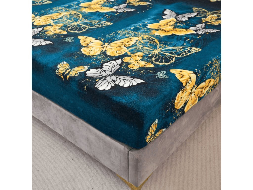 Prostěradlo mikroplyš ZLATÝ A BÍLÝ MOTÝL 180x200 cm tmavě zelené
