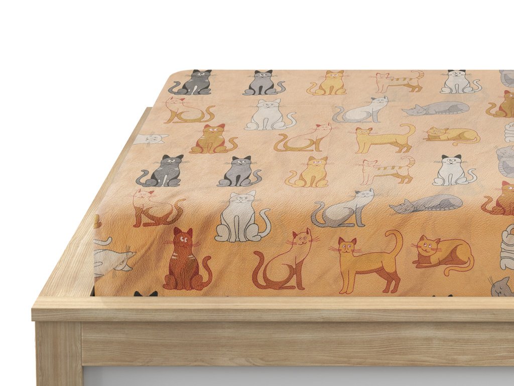Prostěradlo mikroplyš COLORED CATS 200x200 cm krémové