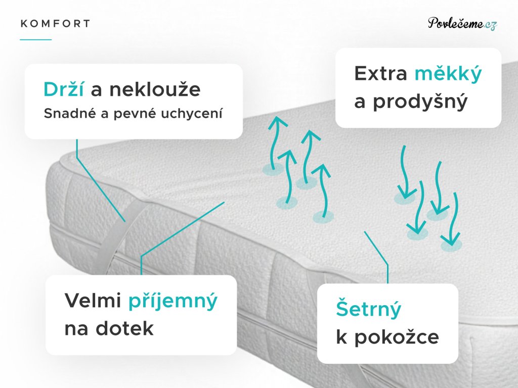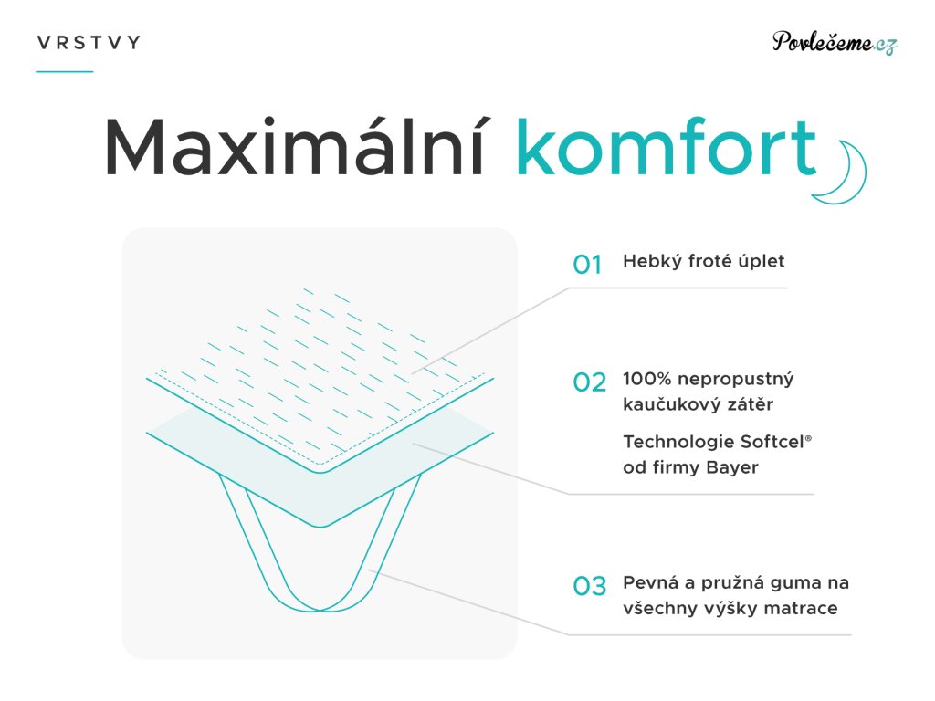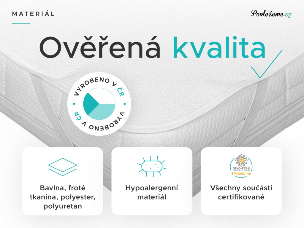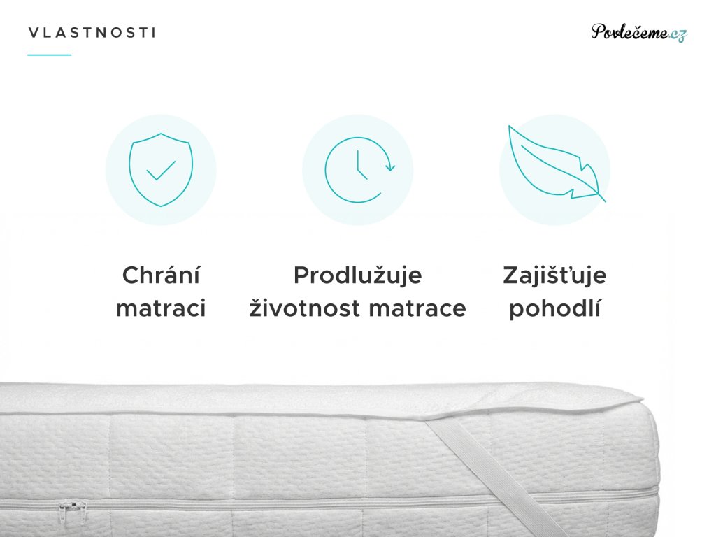 Ochrana matrace je důležitější, než si myslíte. Každý člověk, ať dítě nebo dospělý se přirozeně potí. Během noci vypotíme až litr potu, který se vsákne do prostěradla a jádra matrace. Chránič matrace celkově zvýší hygienu lůžka. Navíc chrání před mechanickým poškozením, znečištěním, roztoči, potem i močí. Jedná se o skvělého pomocníka na dětské postýlky nebo první postele. Své místo má také u dospělých jako běžná ochrana matrace, u seniorů nebo dlouhodobě nemocných, kteří jsou upoutáni na lůžko. Voděodolný chránič vytvoří ochrannou a tekutinám nepropustnou vrstvu. Pocitu spánku na igelitu se bát nemusíte, horní vrstva chrániče je vyrobena z mikrovlákna, které je šetrné k pokožce a příjemné na dotek.