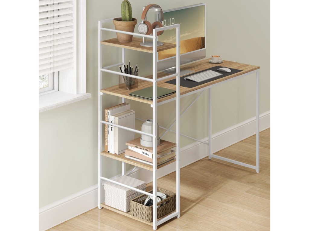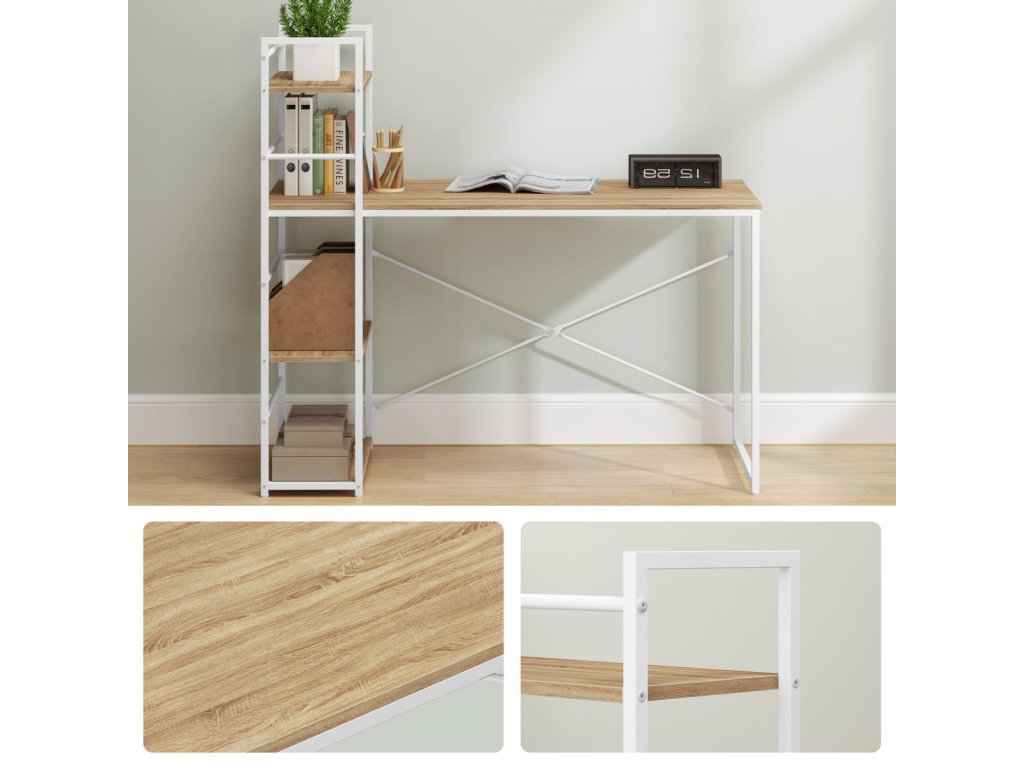 Psací stůl MAX 4.0 SONOMA s regálem a bílými nohami 120x44 cm