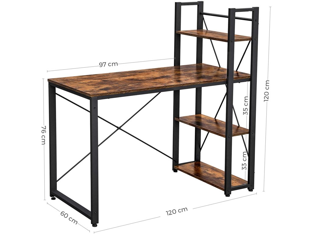 Psací stůl TAYLOR s regálem 120x60cm, černý s dekorem rustikálně hnědá