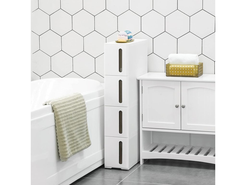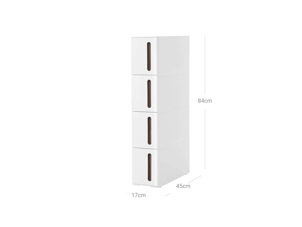 Úzký regál na kolečkách se 4 šuplíky TROLLEY 17x84 cm, bílý