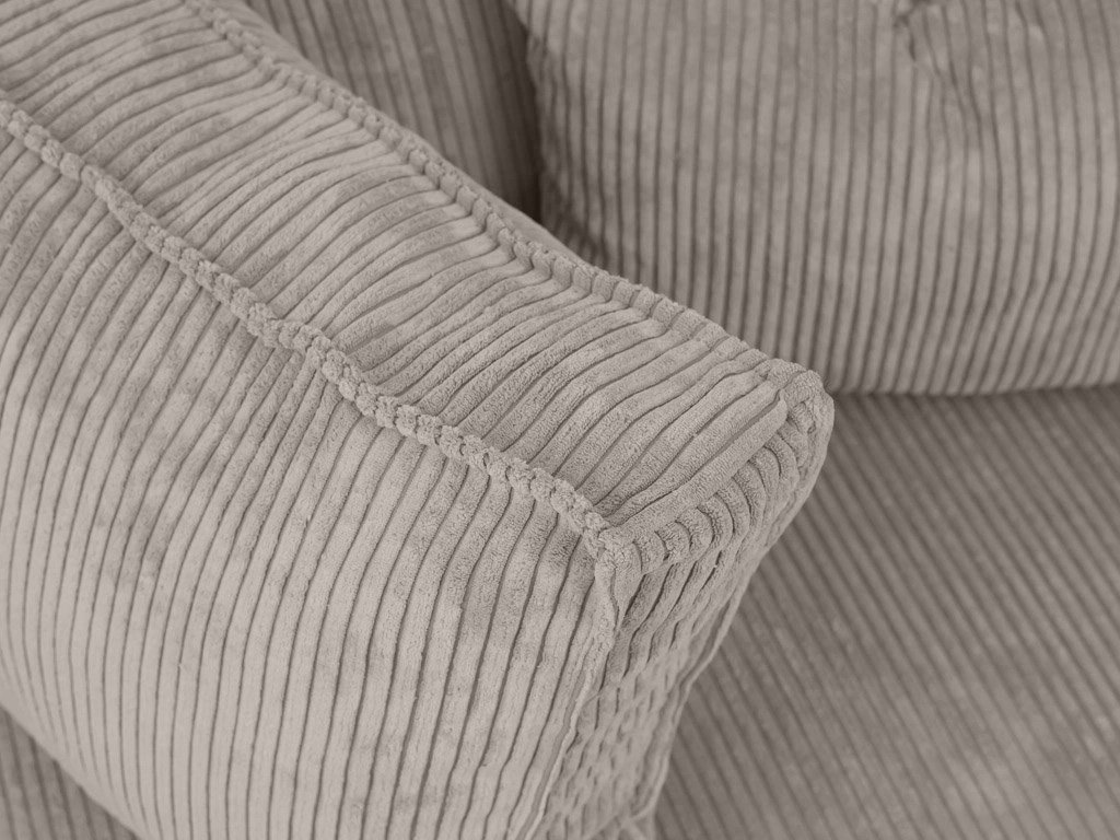 Souprava je potažena Poso tkaninou s jemnou žebrovanou texturou, velmi příjemnou na dotyk, s vysokou gramáží 380g/m2 a odolností vůči oděru. Sedáky soupravy tvoří kvalitní a dlouhodobě tvarově stálá polyuretanová pěna doplněná o výztuhu z vlnitých pružin. Konstrukce sedačky je vyrobena z masivního borovicového a bukového dřeva s doplňkovým materiálem z dřevotřísky, překližky a sololitu.