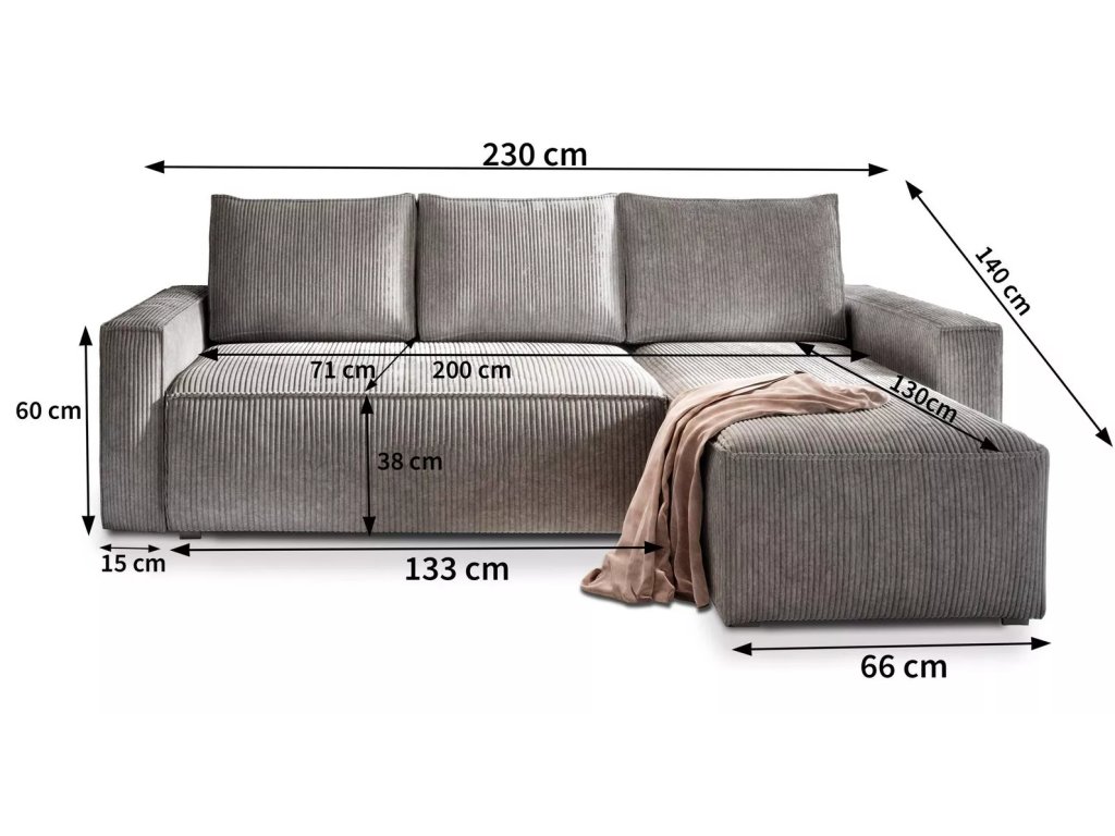 - Velikost: Pohovka 230 cm