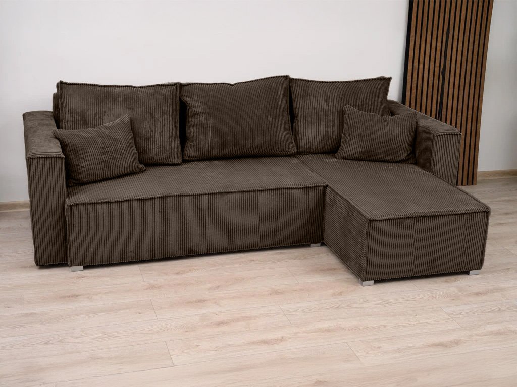 Tmavě hnědá rohová pohovka SMART COSARO, oboustranná + 2 polštářky ZDARMA