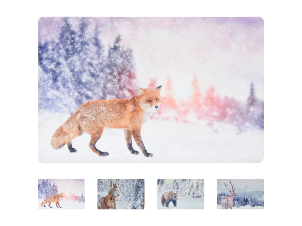 Vánoční rohožka WILD IN WHITE o rozměru 38 x 58 cm přinese do vašeho domova kouzelnou zimní atmosféru. Vyrobena je z kvalitního materiálu, který zajišťuje dobrou savost i odolnost proti opotřebení. Roztomilé motivy zvířat v zasněžené krajině – liška, veverka, medvěd nebo jelen – dodají vstupu do vašeho domova nádech klidu a pohádkové zimy. Spodní strana je opatřena protiskluzovou úpravou, která zajišťuje bezpečné používání.