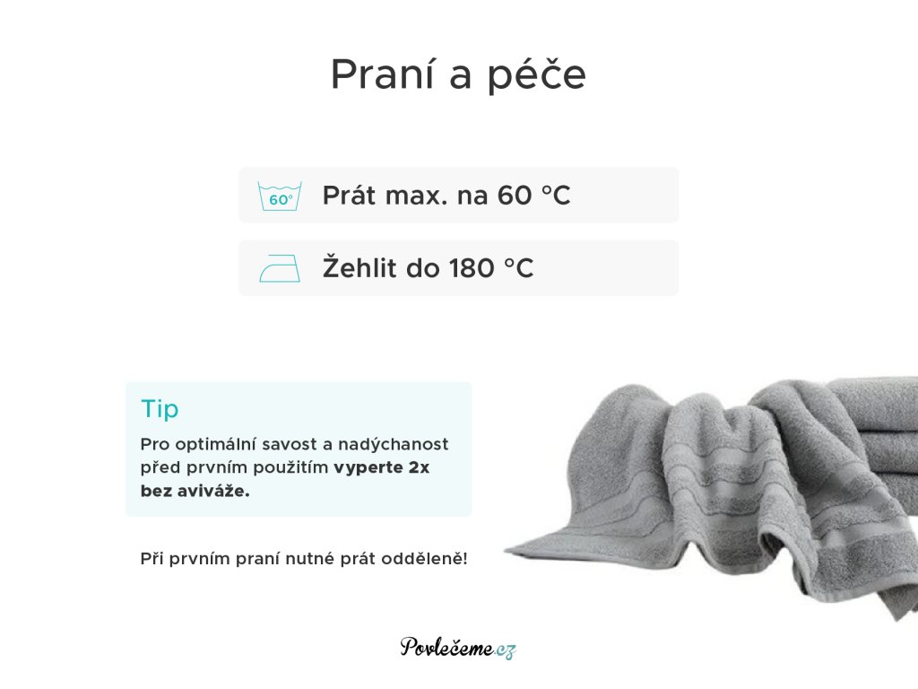 - Pro dlouhotrvající jemnost, hebkost a savost není doporučeno používat aviváž