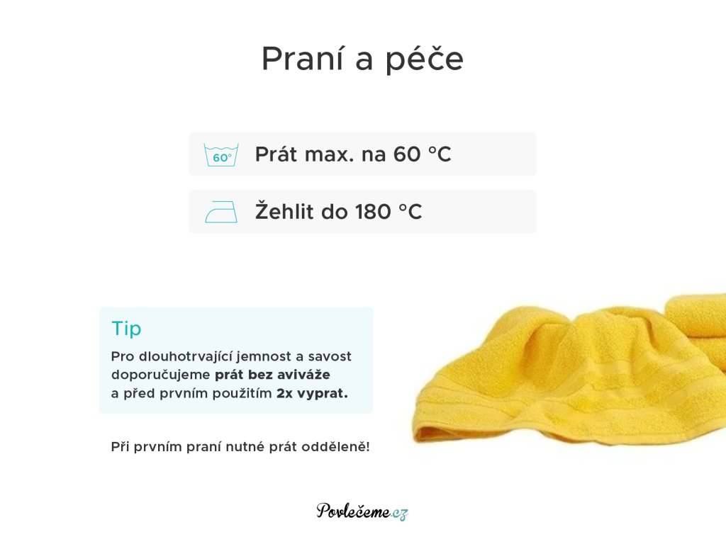 - Pro dlouhotrvající jemnost, hebkost a savost není doporučeno používat aviváž