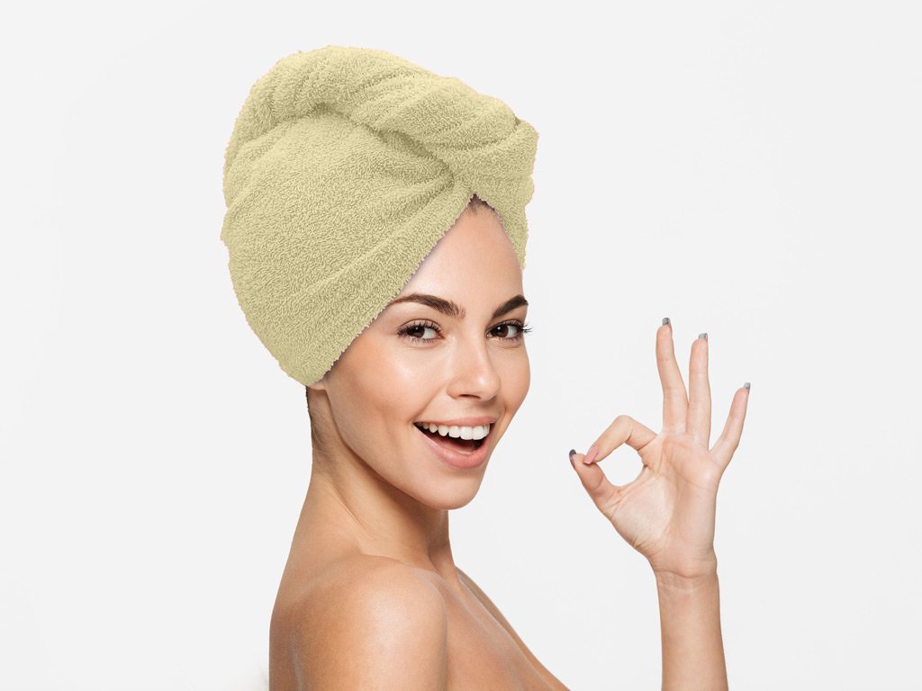 Rychleschnoucí froté turban na vlasy béžový, 100% bavlna
