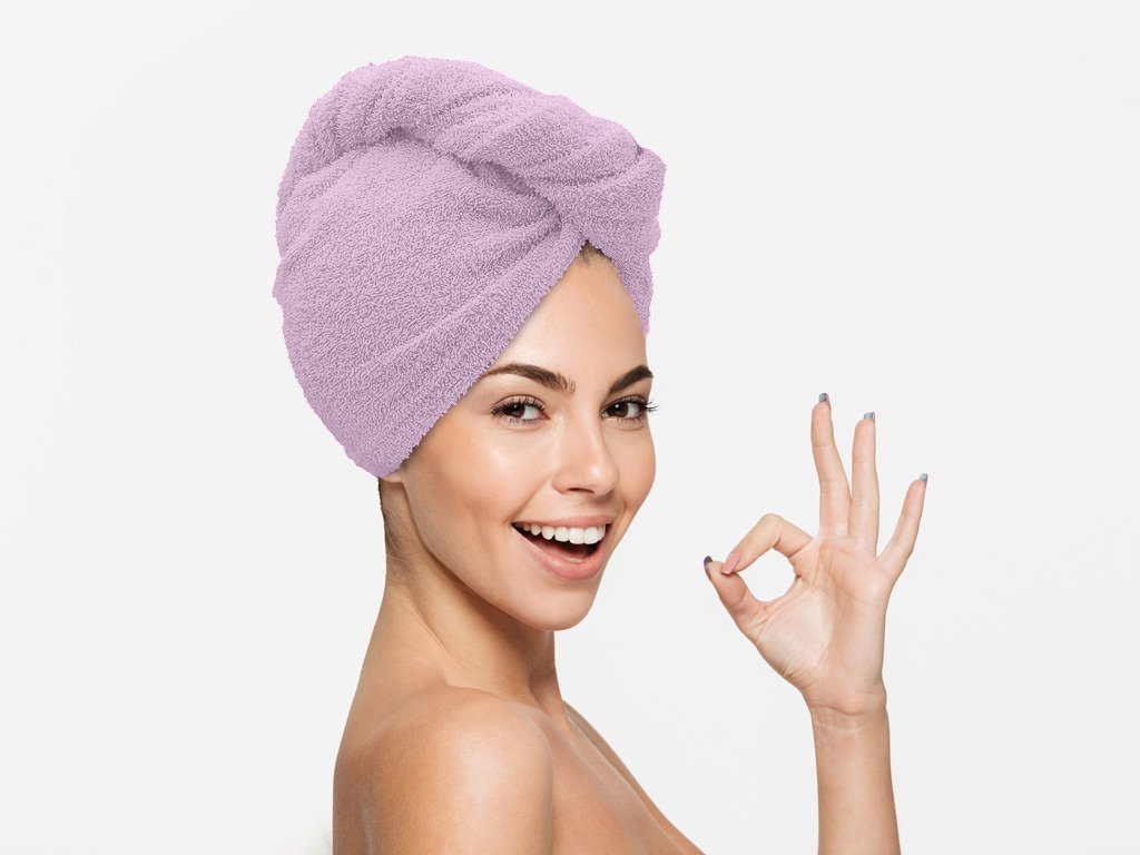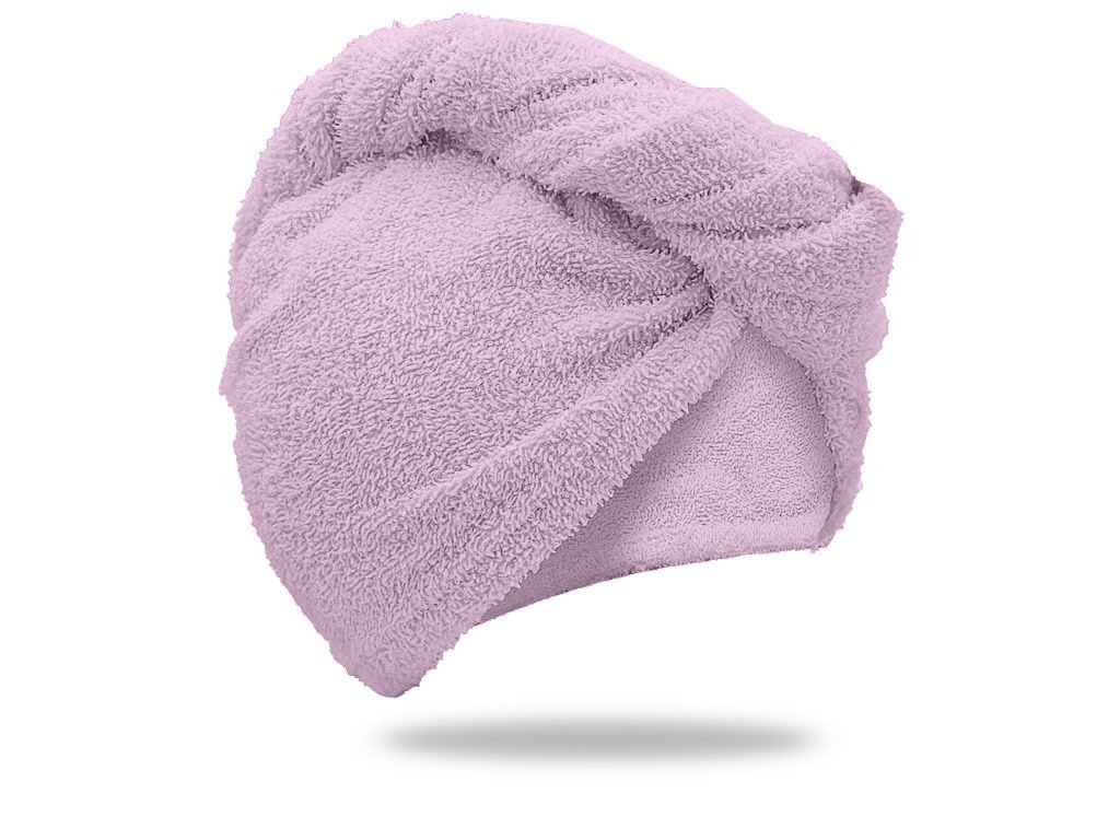 Rychleschnoucí froté turban na vlasy světle fialový, 100% bavlna