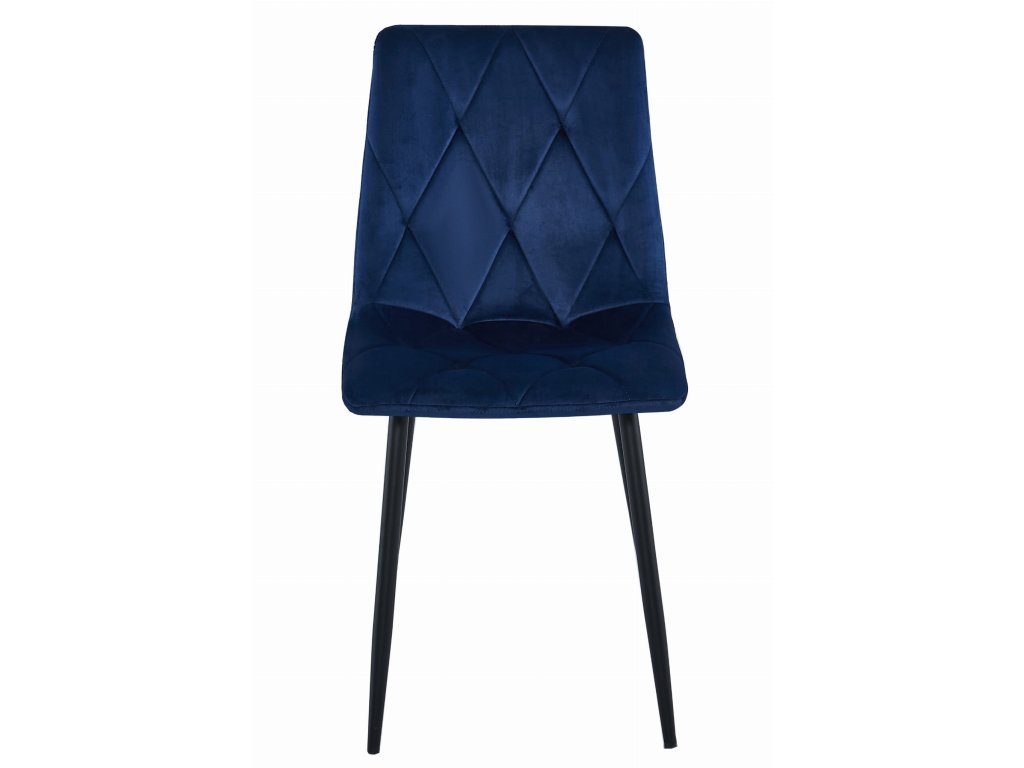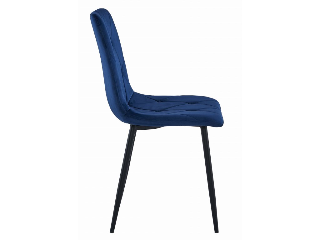 Modrá sametová jídelní židle LIBRA s černými nohami