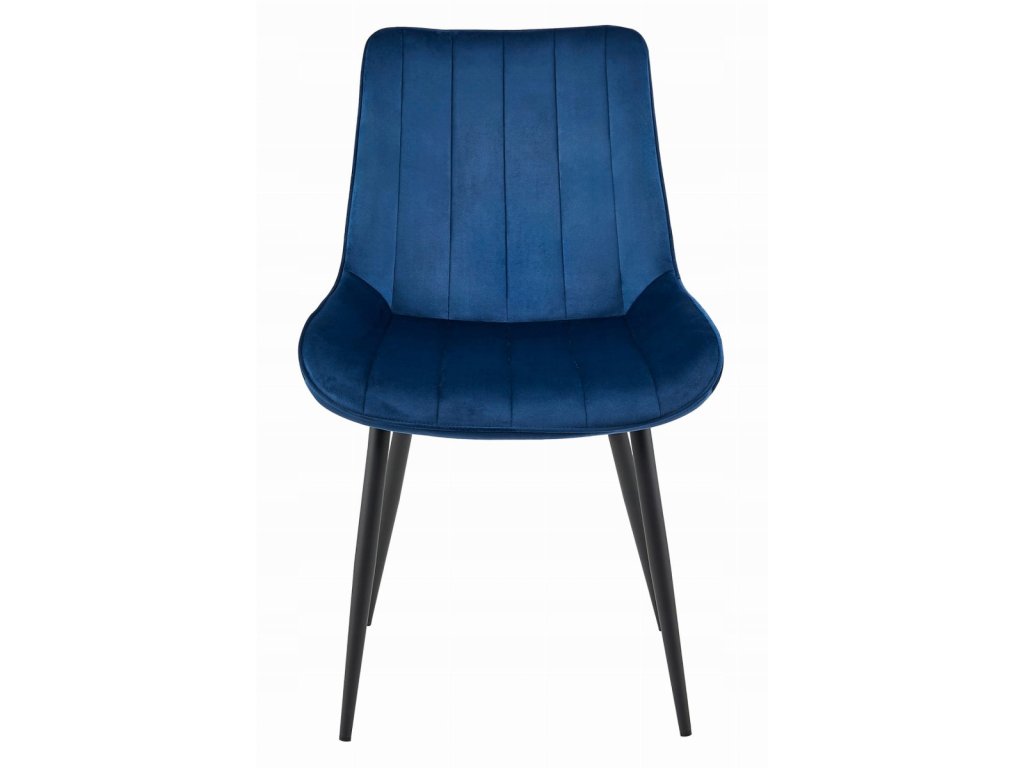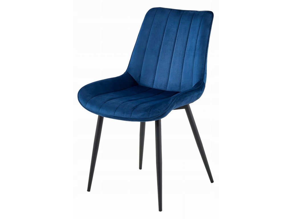 Modrá sametová židle SOSA s černými nohami