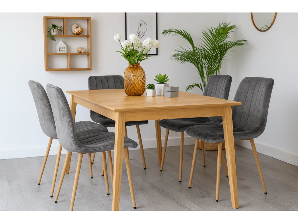 Styl spojující jednoduché tvary a vysokou funkčnost. Vsaďte na střídmé doplňky, jemnou paletu barev a přírodní materiály. Skvělými doplňky do skandinávské jídelny jsou stálezelené rostliny, barevné prostírání a velké kovové lampy. Skandinávský interiér se neobejde bez velkých oken a osvětlení, které zaručí světlo i během krátkých dnů. Čalouněná jídelní židle Lava dokonale zapadne do jídelny inspirované skandinávskými zeměmi. Jednoduché prošívání a kovové nohy v dřevěném dekoru slaďte se stolem s kovovými elementy. Výborně vypadají různé barvy židlí u jednoho stolu. Nebojte se změny.