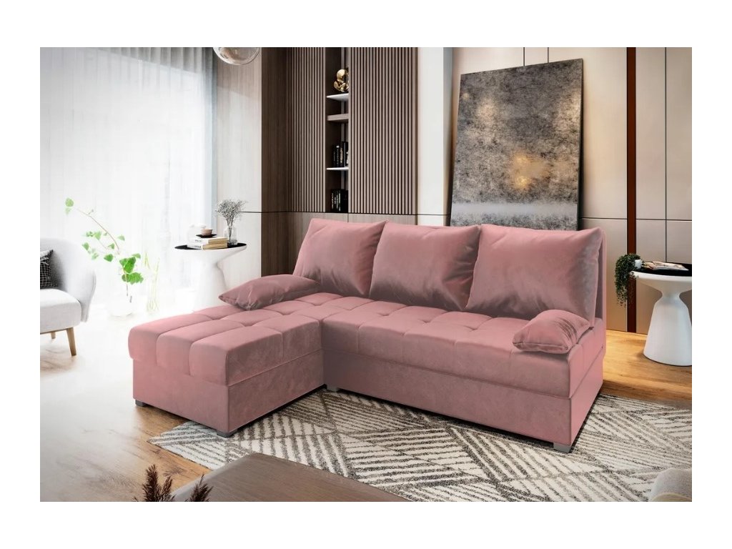 Růžová rozkládací rohová pohovka ZENA, oboustranná