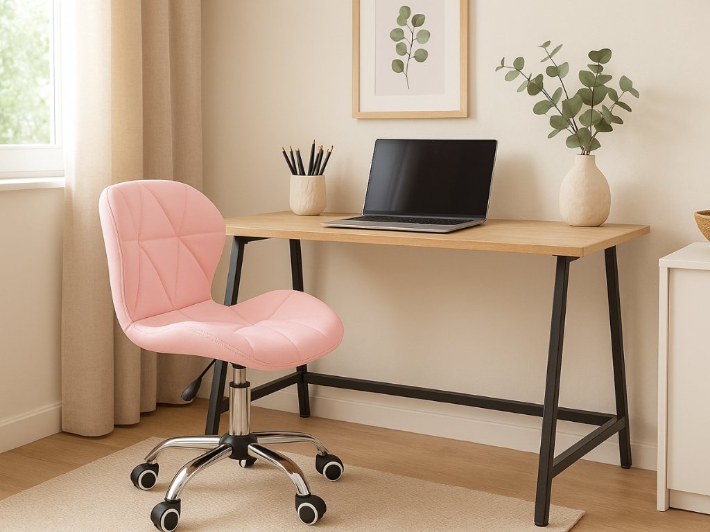 Set do pracovny stůl TAYLOR SONOMA 100x50 cm + křeslo AVOLA z eko kůže růžové