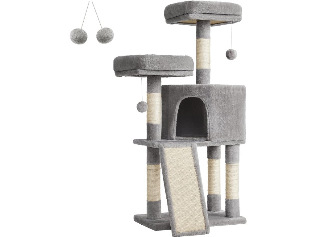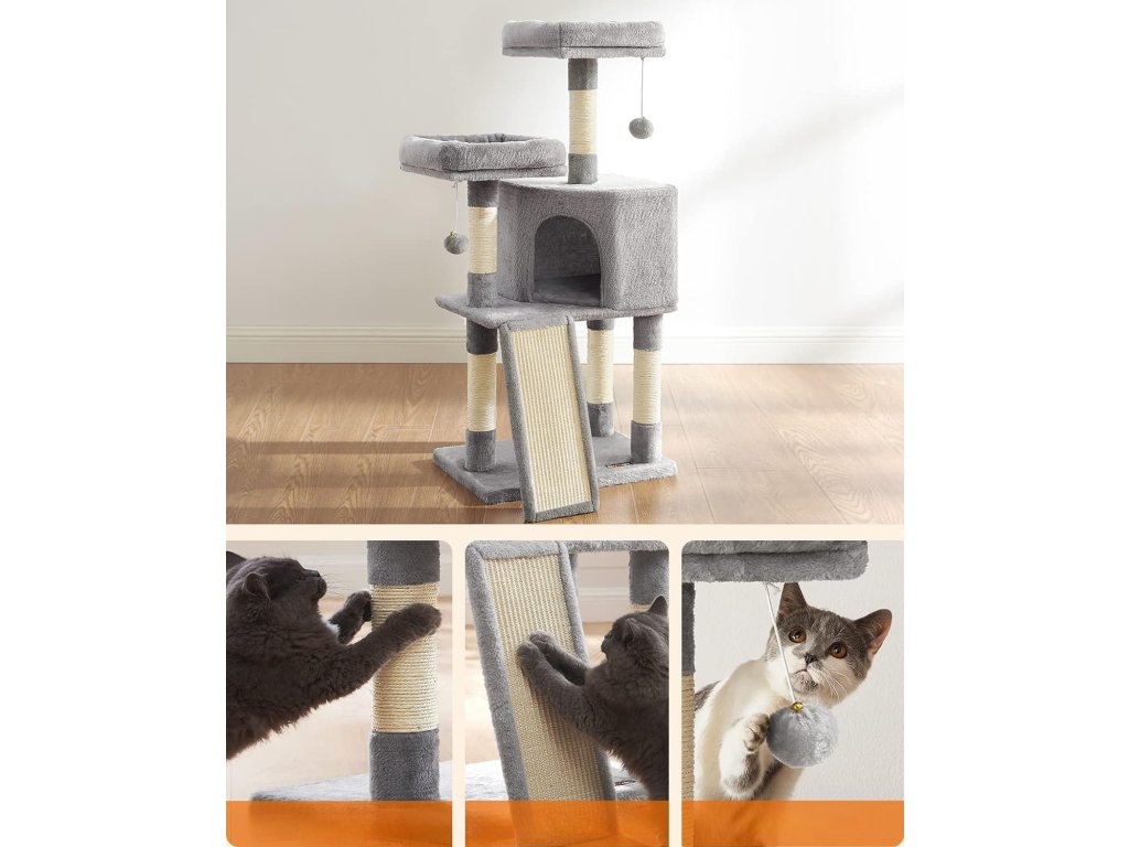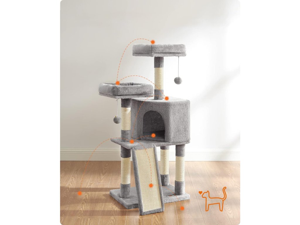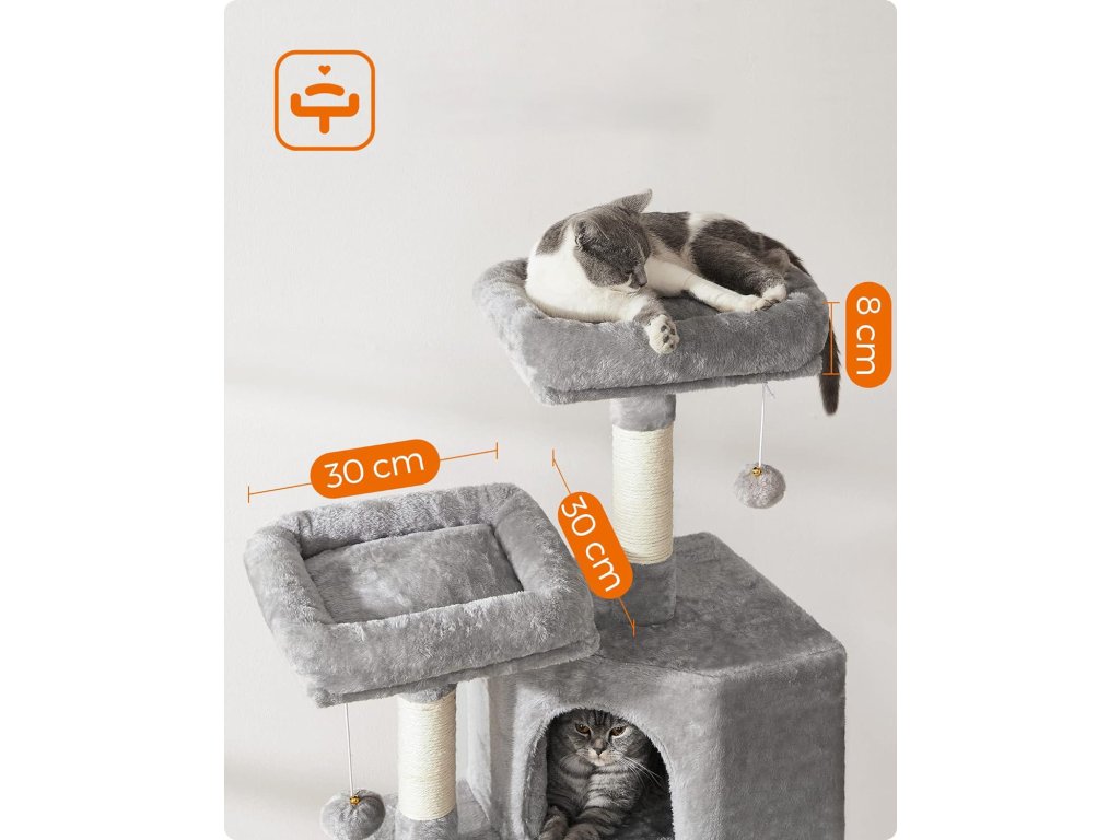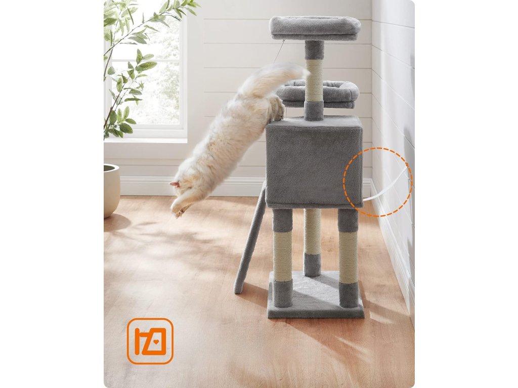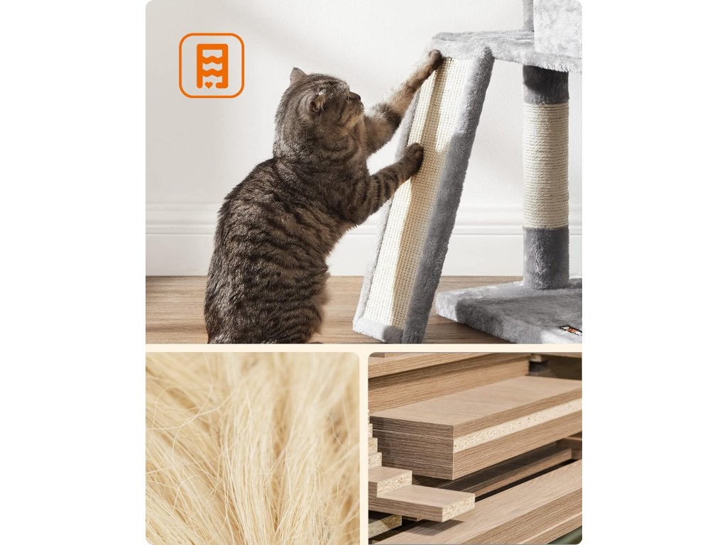 Toto škrabadlo pro kočky spojuje funkčnost a komfort v elegantním designu. Díky kombinaci měkké plyšové tkaniny a odolného sisalu poskytuje ideální prostor pro odpočinek i hru, což ocení i více koček současně. Stabilní konstrukce a snadná údržba zaručují dlouhou životnost, zatímco neutrální barvy skvěle zapadnou do jakéhokoli interiéru.