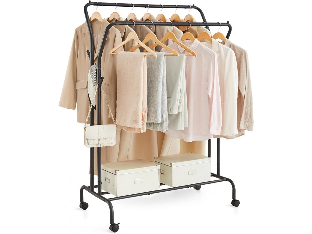 Černý víceúčelový šatní regál na kolečkách UBRA