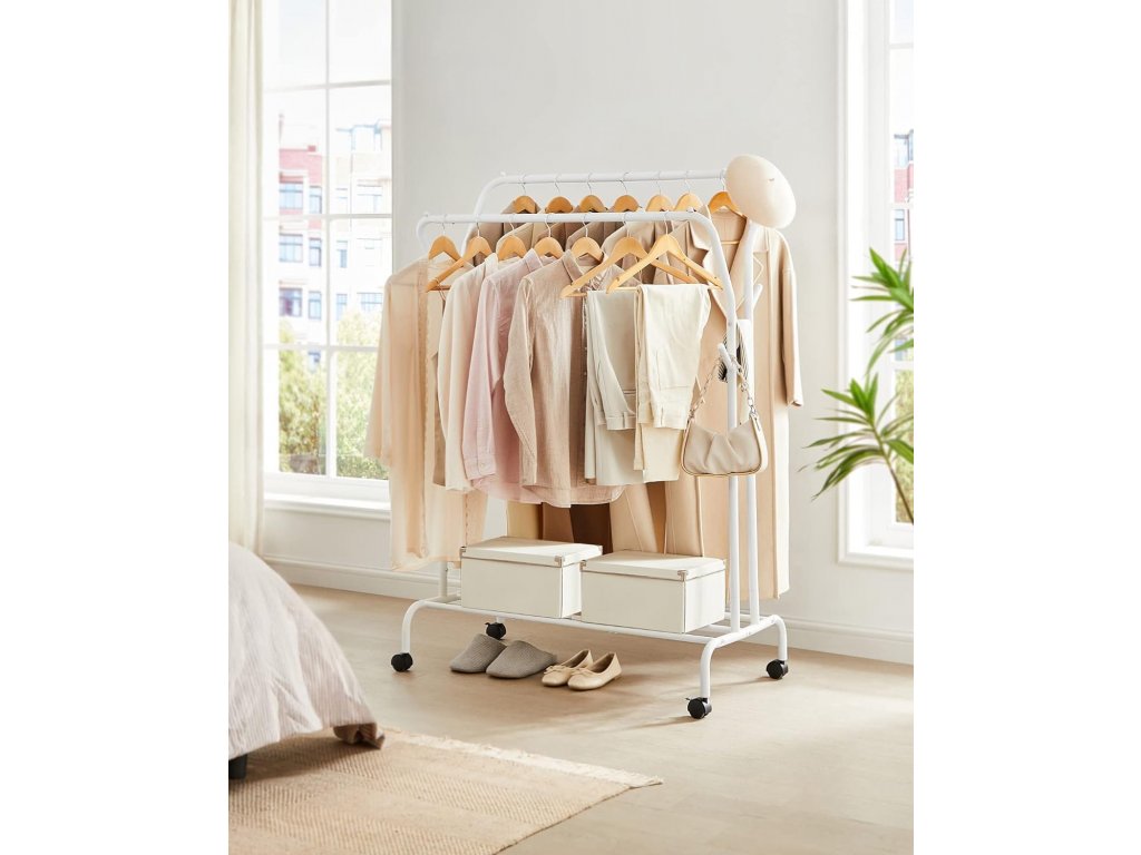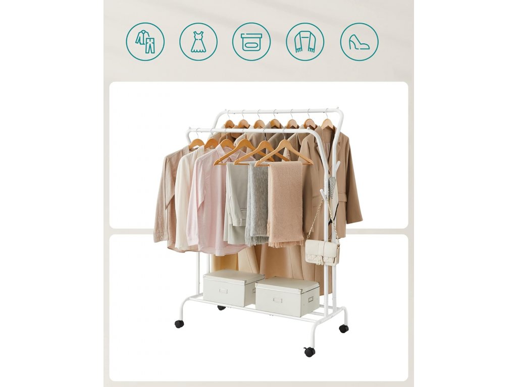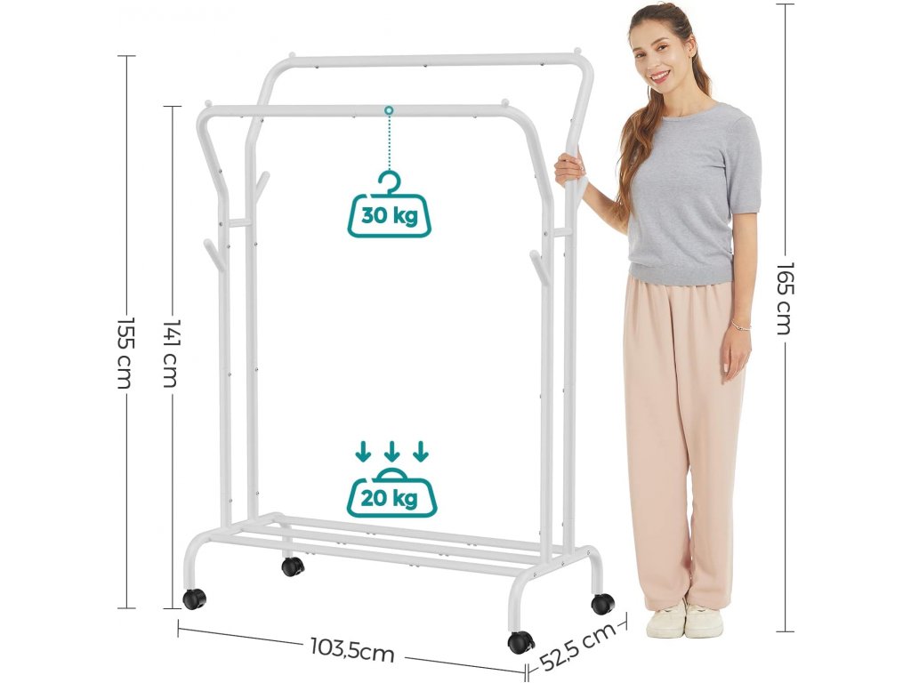Dvouřadý pojízdný stojan na oblečení HASAR, bílý