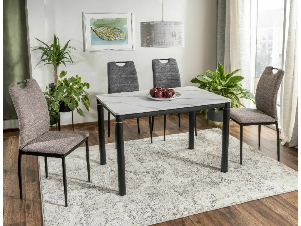 Oživte svou jídelnu jednoduchostí a elegancí moderního designu. Tento jídelní stůl se díky své decentní černé barvě a mramorovému dekoru snadno sladí s různými styly interiéru – od skandinávského po industriální. Ideální volba pro každodenní stolování i slavnostnější příležitosti. V kombinaci s pohodlnými židlemi vytvoříte útulný prostor, kde se rádi sejde celá rodina. Snadná údržba a odolné materiály zajistí, že vám stůl bude sloužit dlouhá léta.