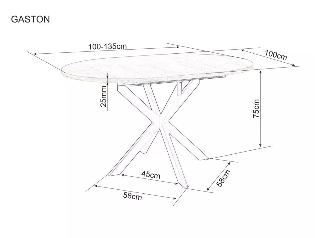 Rozkládací jídelní stůl GASTON 100(135)X100 cm, černý mramorový dekor