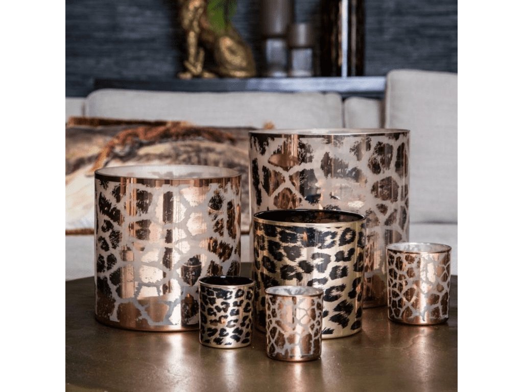 Čisté linie skleněného svícnu v lesklém růžovém odstínu se vzorem žirafí kůže dělají ze svícnu půvabný element domácnosti. Zapalte si k odpočinku svíčku s vůní skořice nebo dřeva a užijte si sváteční dny plnými doušky. Svícen Desiree giraffe ve tvaru válce využijete také na zastřešené terase nebo v zimní zahradě.