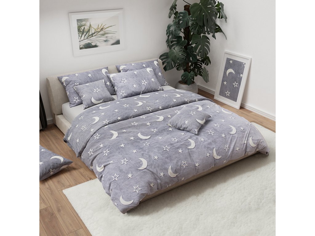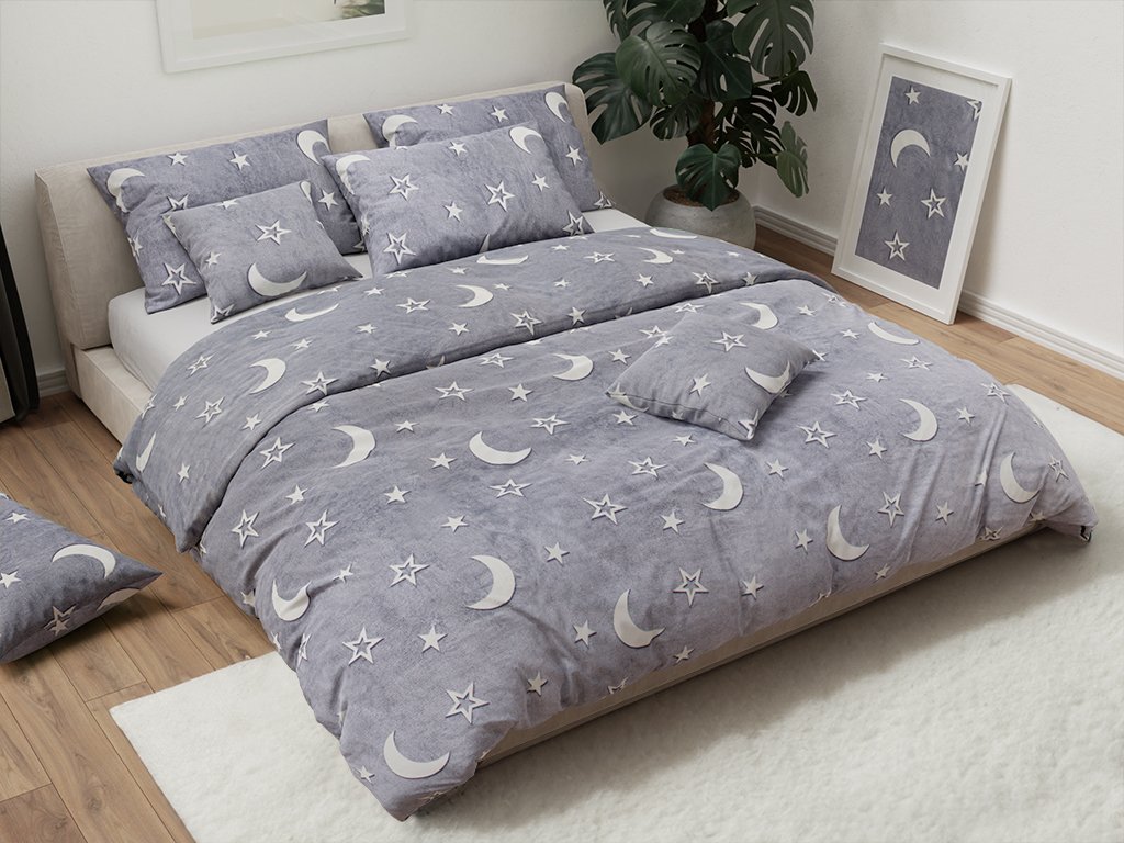 Svítící povlečení mikroplyš BIG MOON šedé